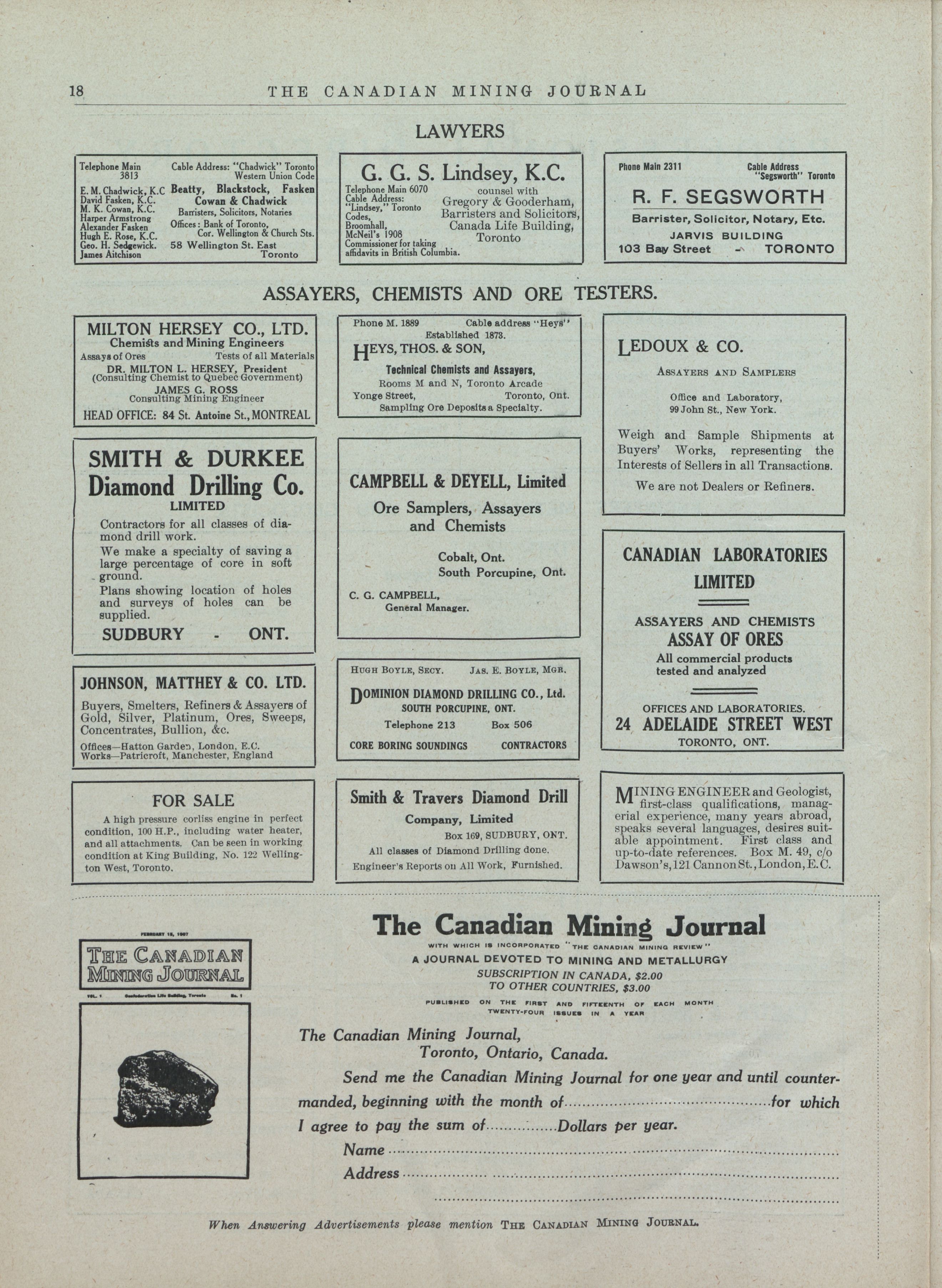 The Canadian Mining Journal : Vol. XXXVI, No. 12 (June 15, 1915)