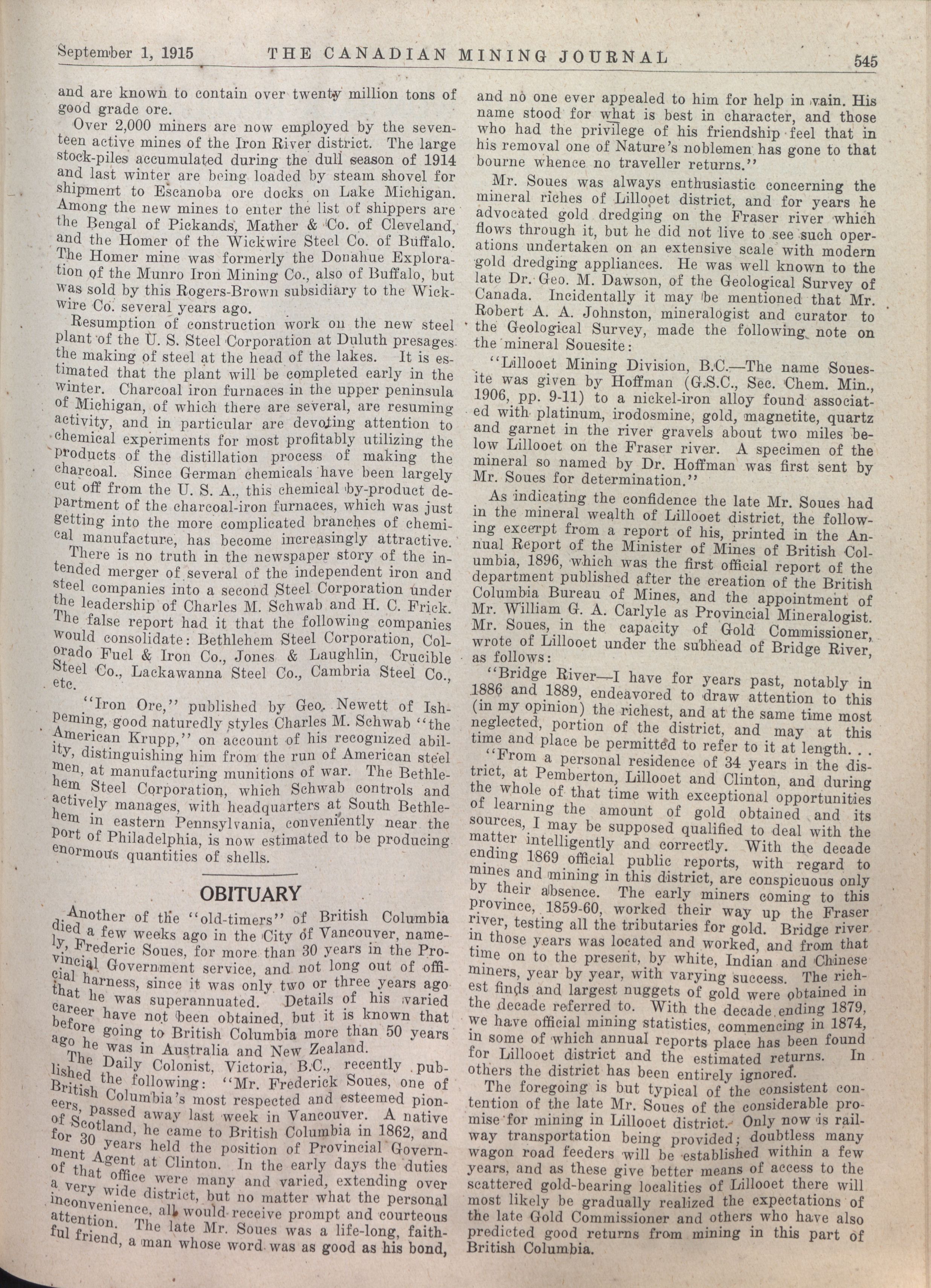 The Canadian Mining Journal : Vol. XXXVI, No. 17 (Sept. 1, 1915)