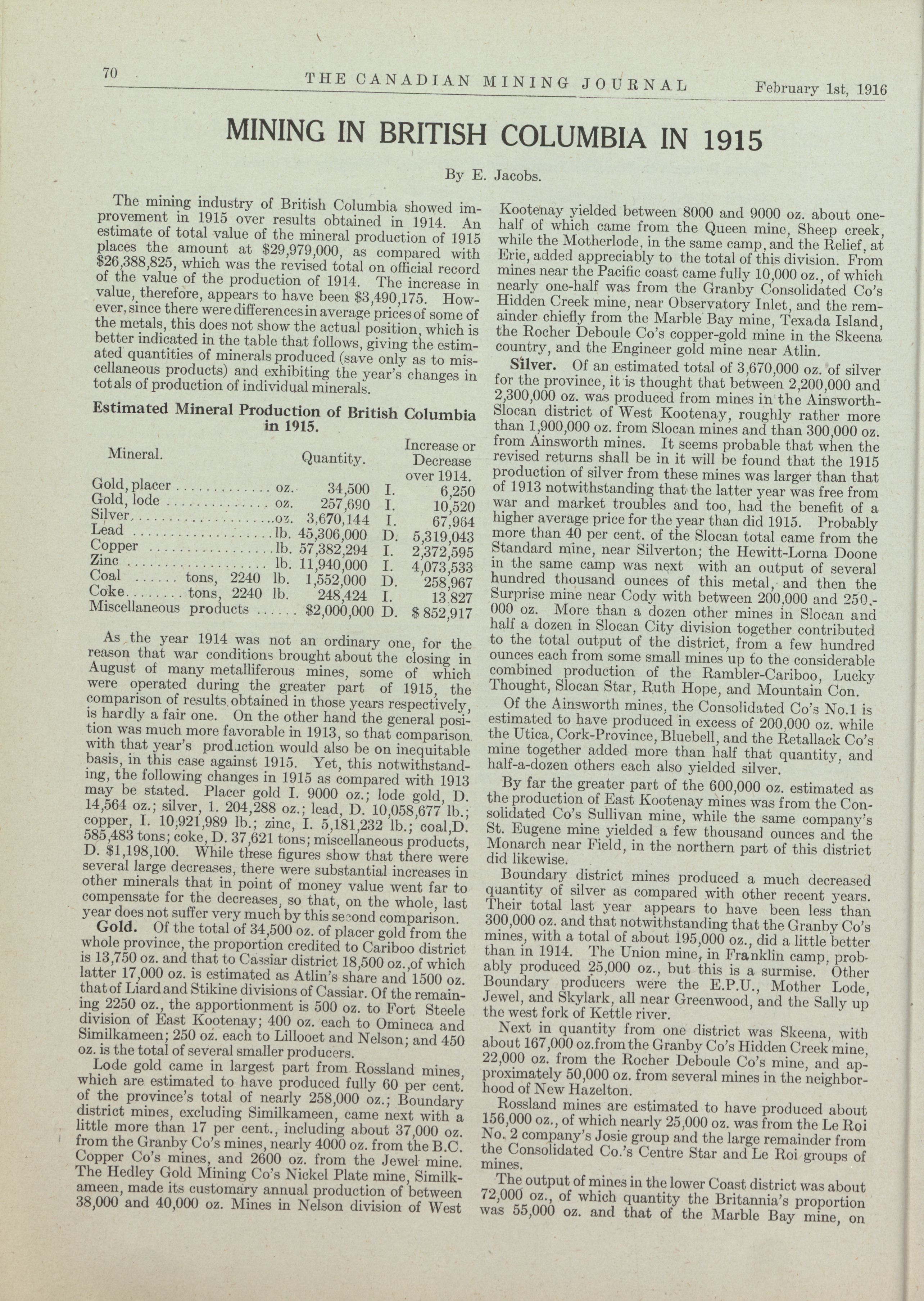 The Canadian Mining Journal : Vol. XXXVII, No. 3 (February 1, 1916)
