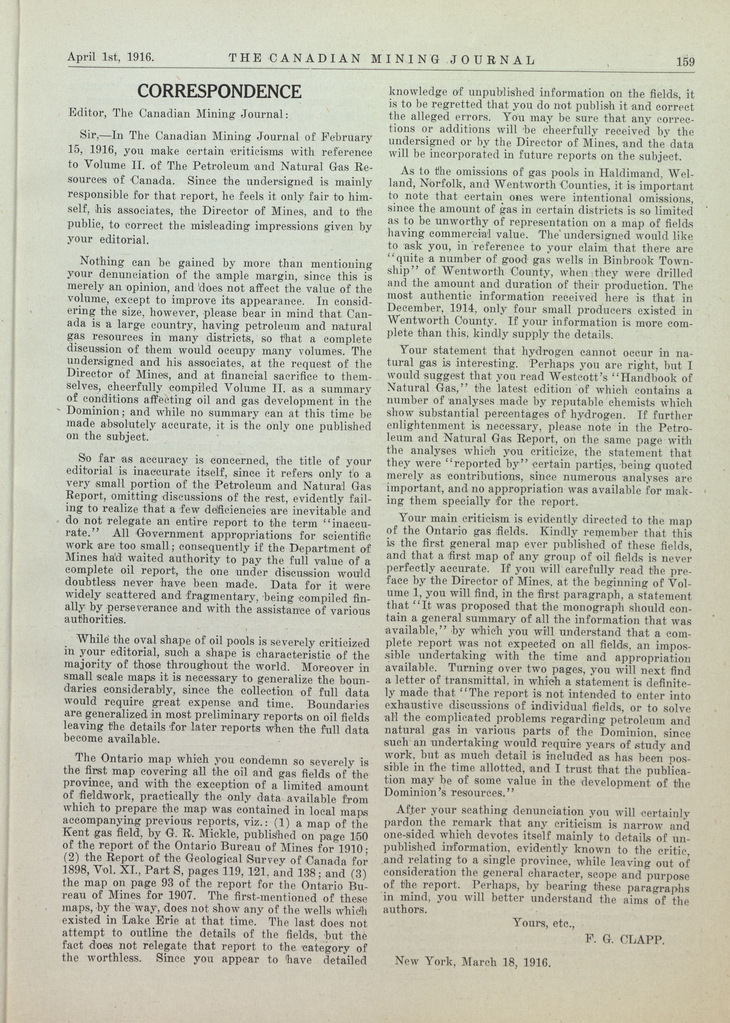The Canadian Mining Journal : Vol. XXXVII, No. 7 (April 1, 1916)