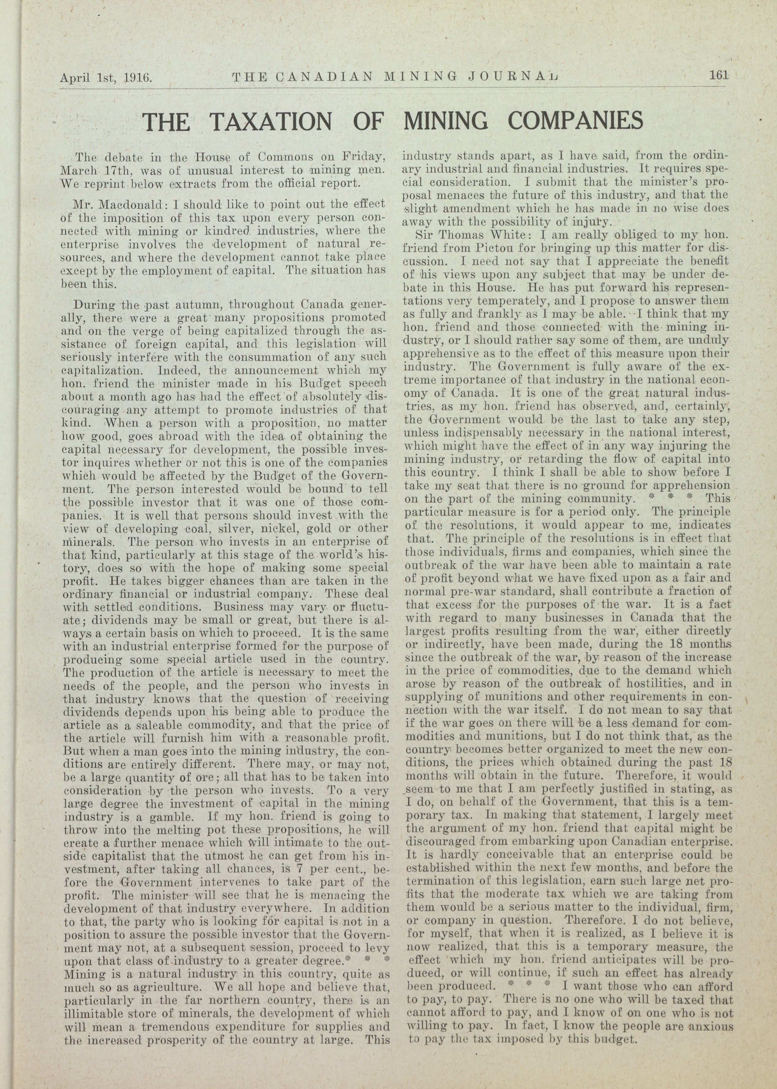 The Canadian Mining Journal : Vol. XXXVII, No. 7 (April 1, 1916)