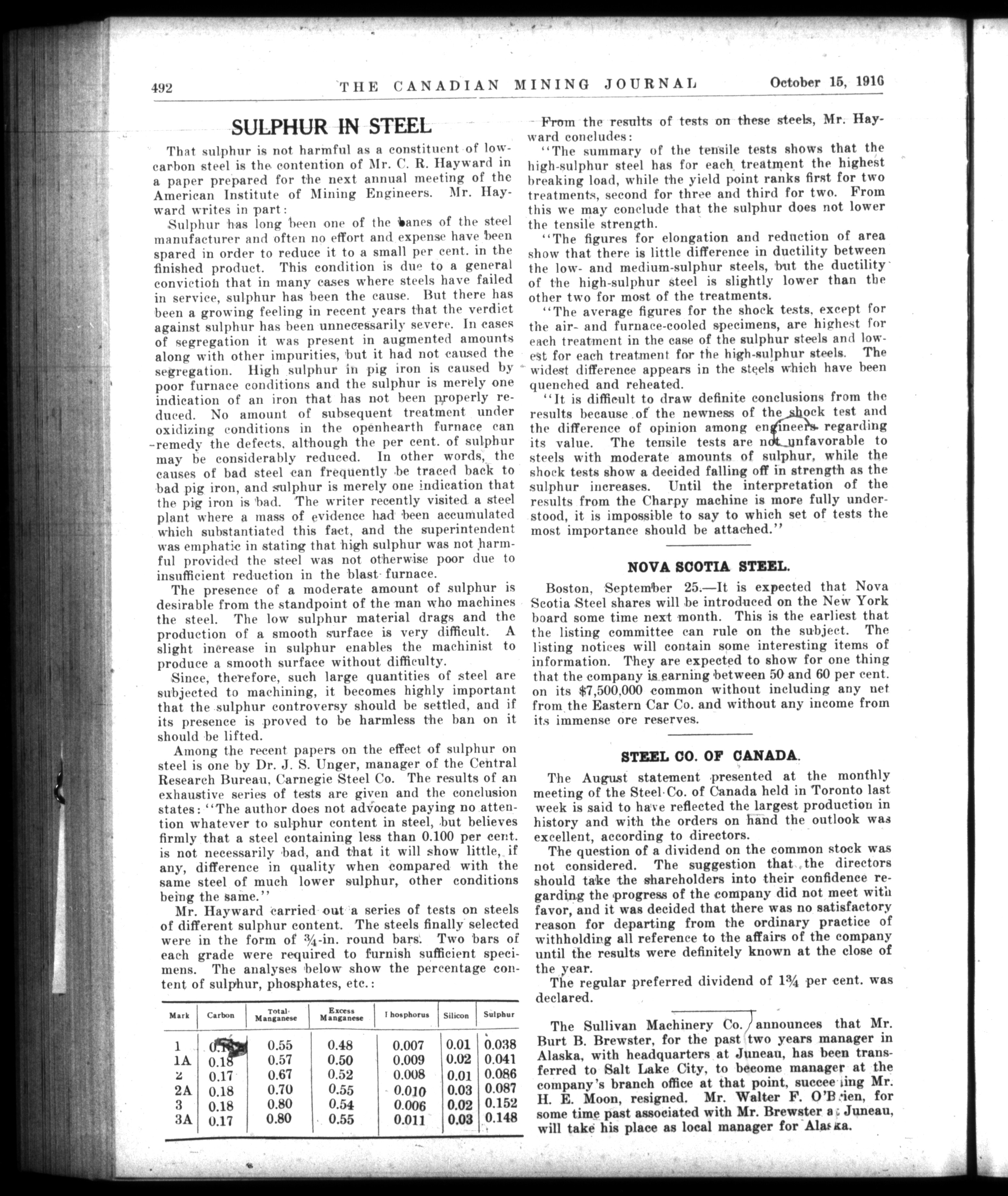The Canadian Mining Journal : Vol. XXXVII, No. 20 (October 15, 1916)