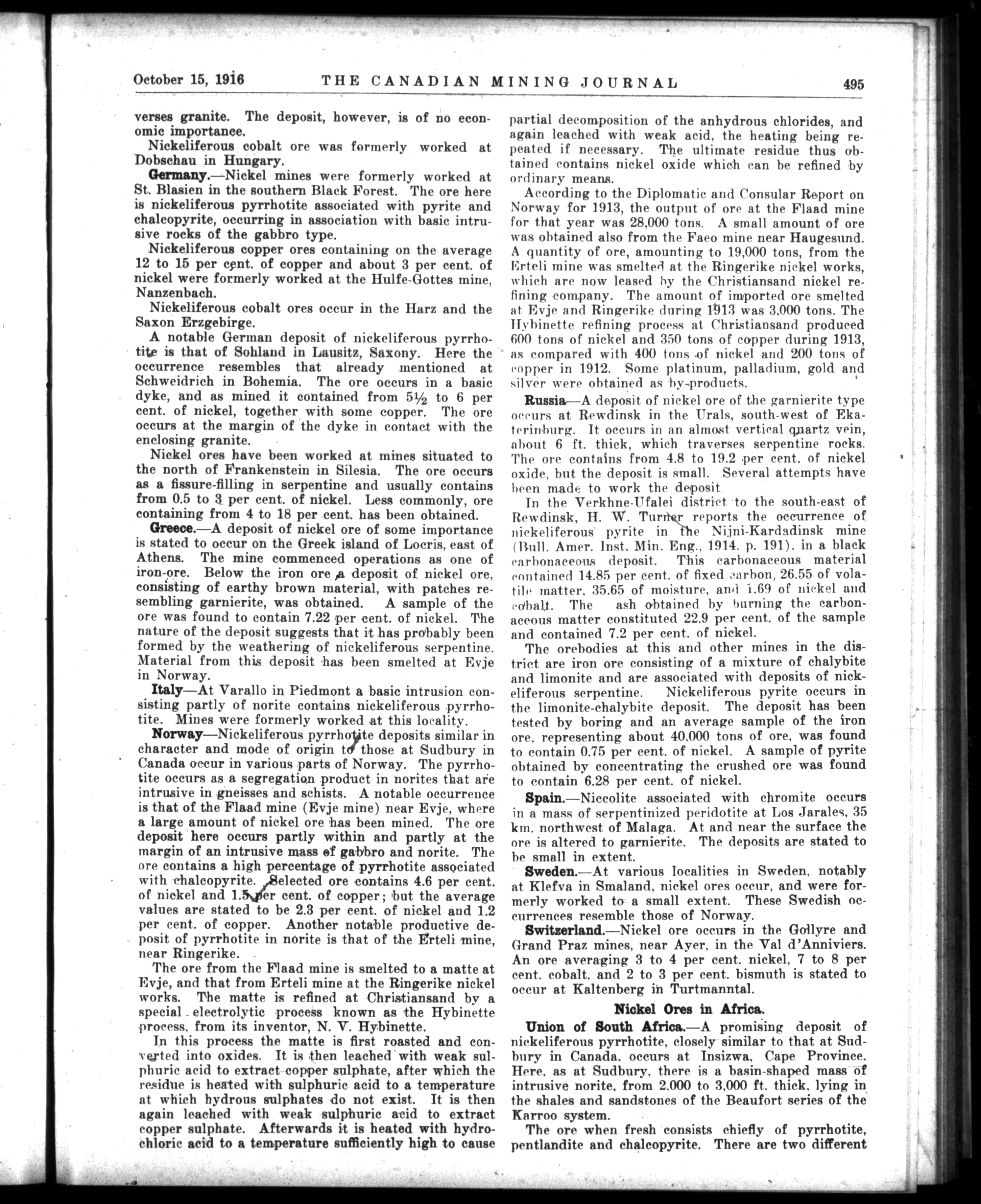 The Canadian Mining Journal : Vol. XXXVII, No. 20 (October 15, 1916)