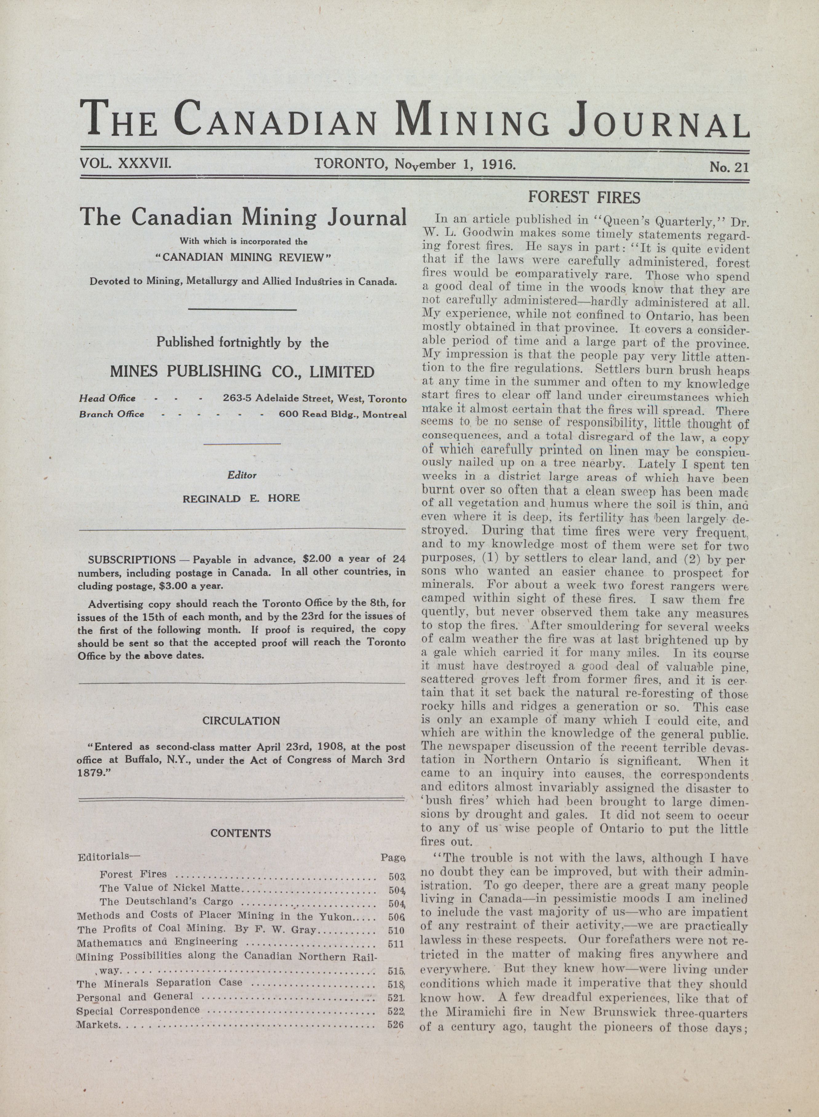 The Canadian Mining Journal : Vol. XXXVII, No. 21 (November 1, 1916)