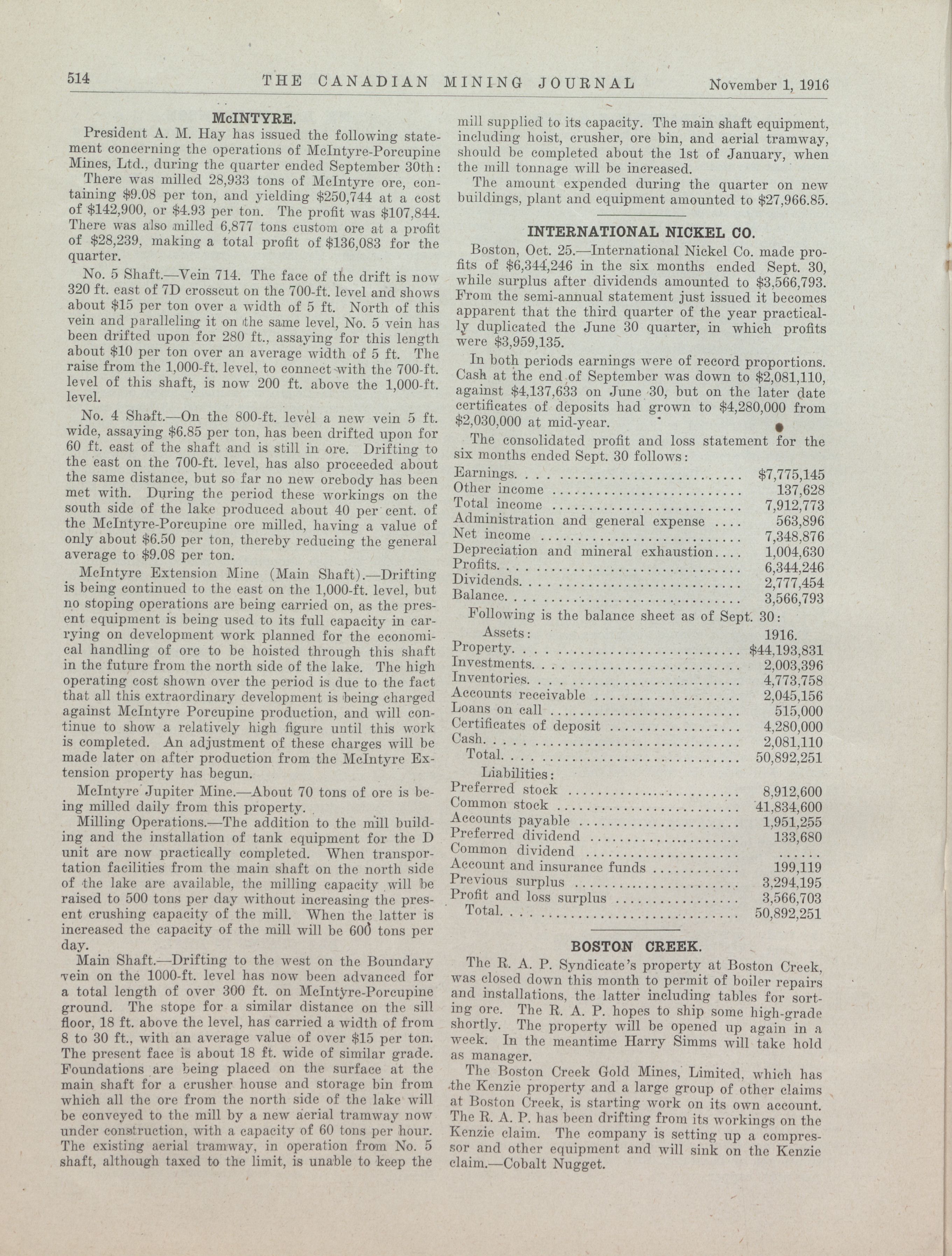 The Canadian Mining Journal : Vol. XXXVII, No. 21 (November 1, 1916)