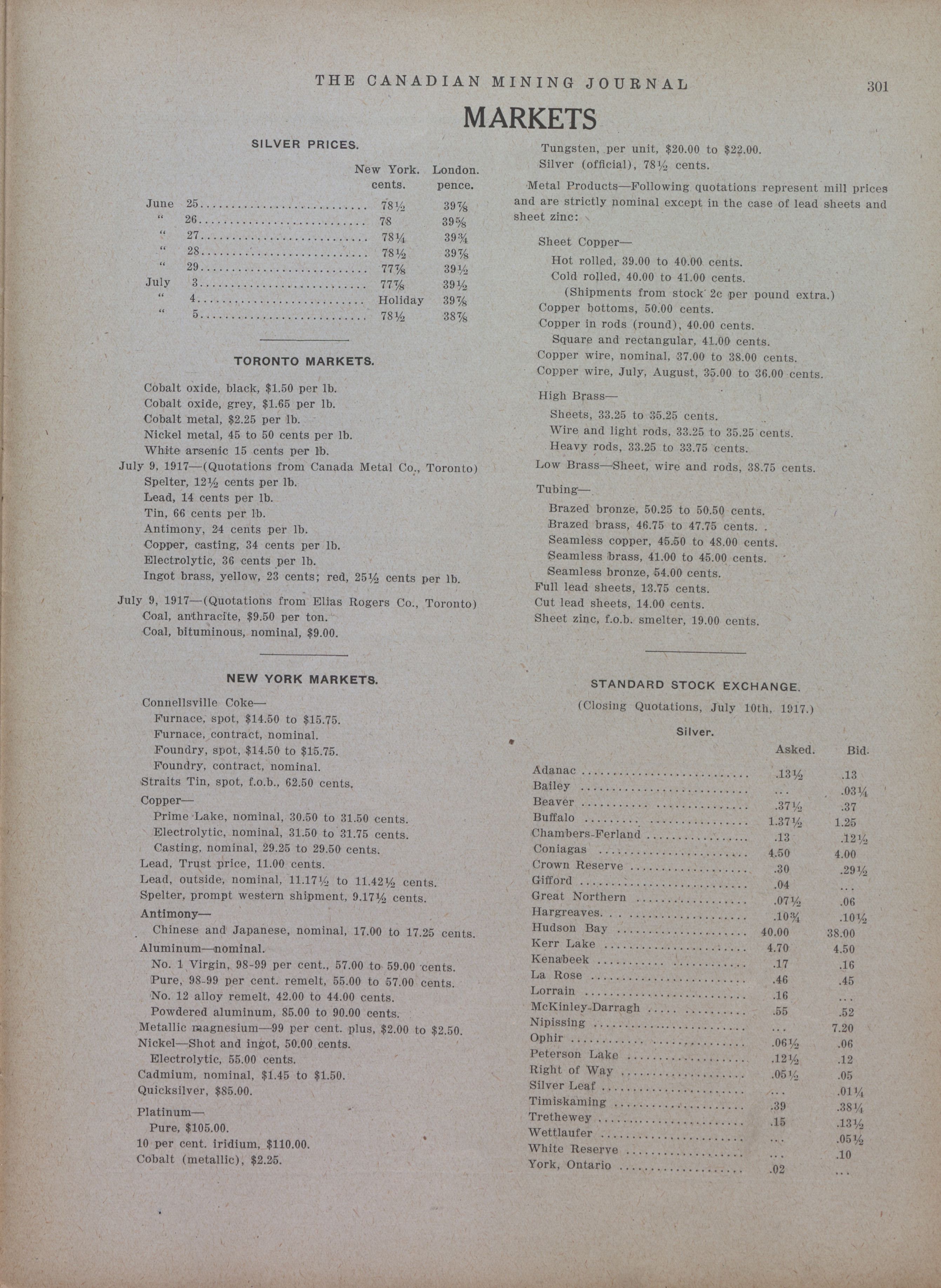 The Canadian Mining Journal : Vol. XXXVIII, No. 14 (July 15th, 1917)