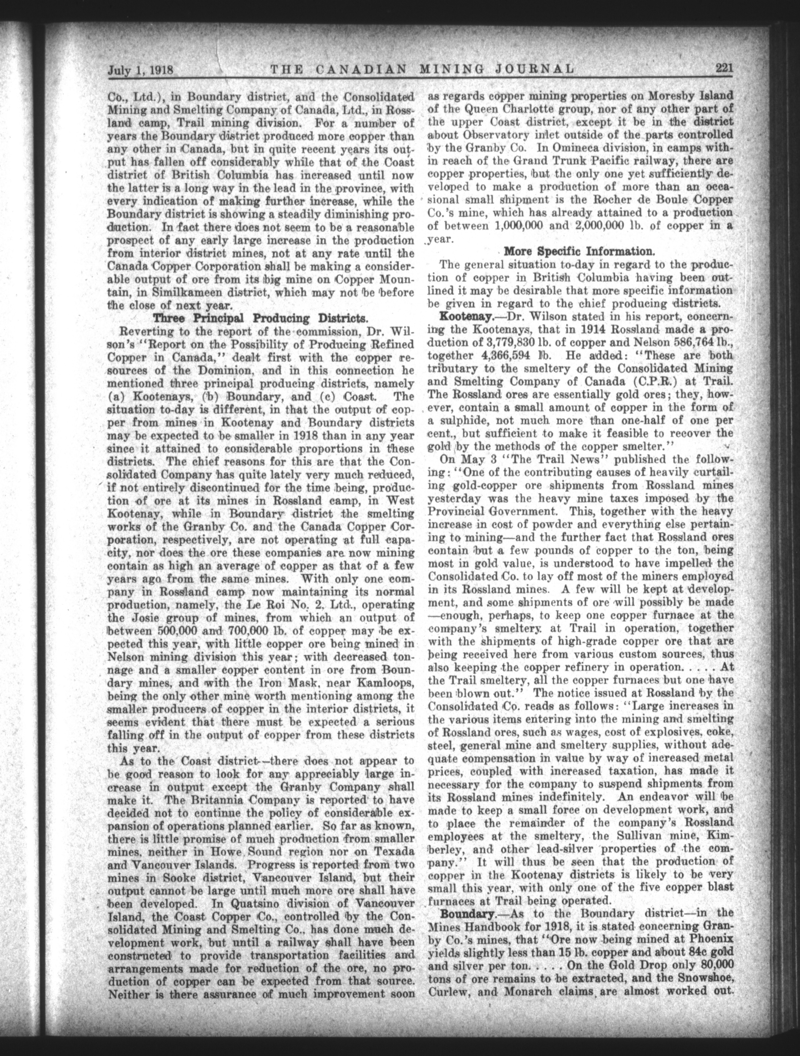 The Canadian Mining Journal : Vol. XXXIX, No. 13 (July 1st, 1918)
