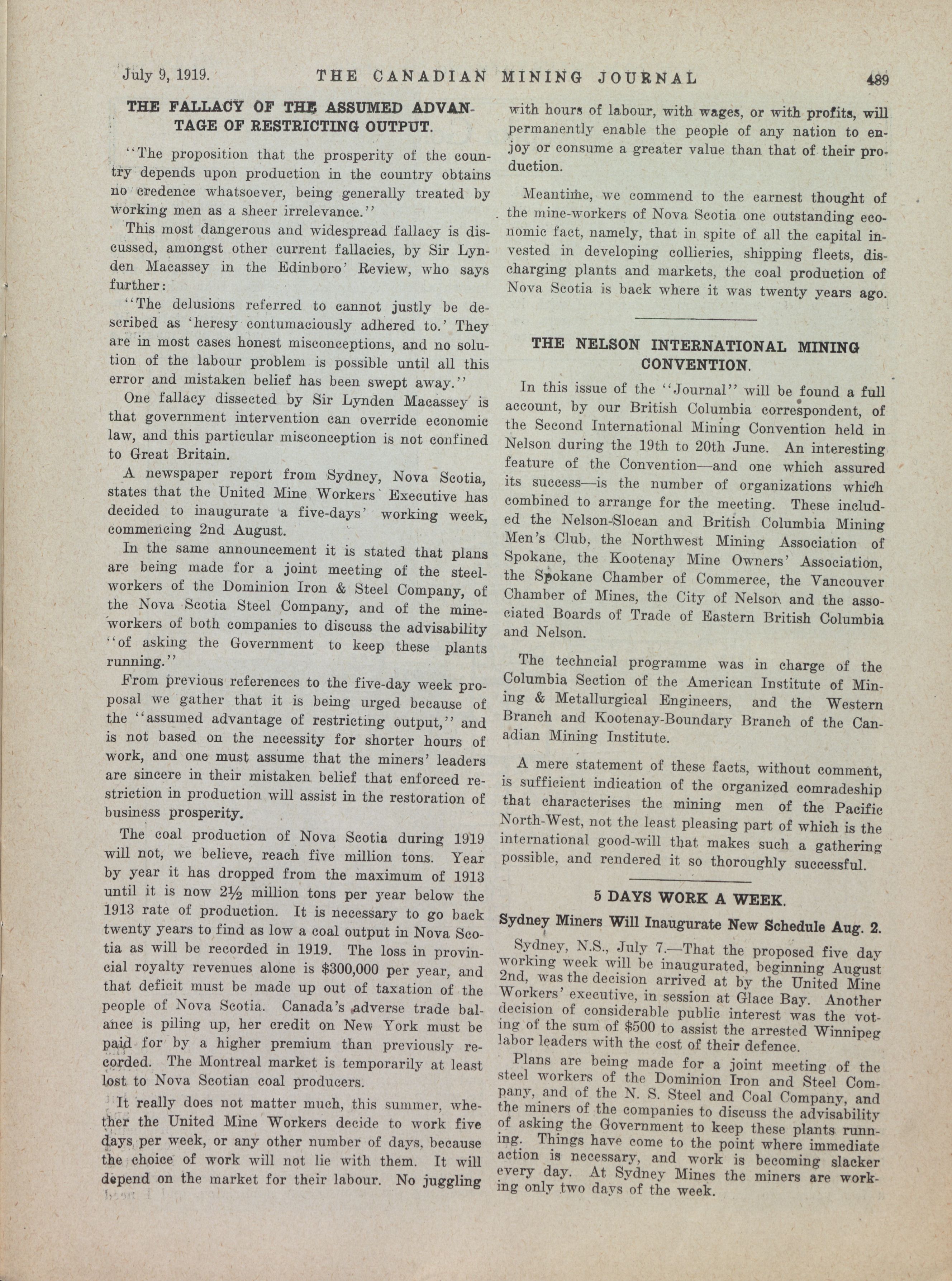 The Canadian Mining Journal : Vol. XL, No. 27 (July 9, 1919)