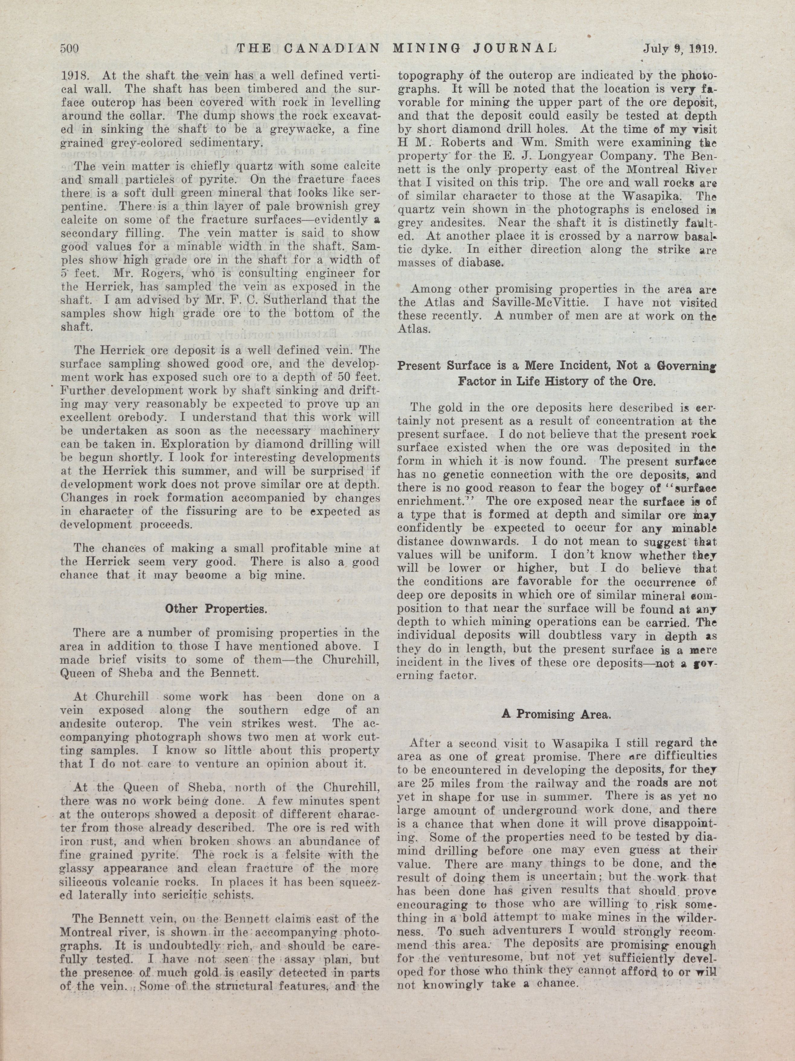 The Canadian Mining Journal : Vol. XL, No. 27 (July 9, 1919)