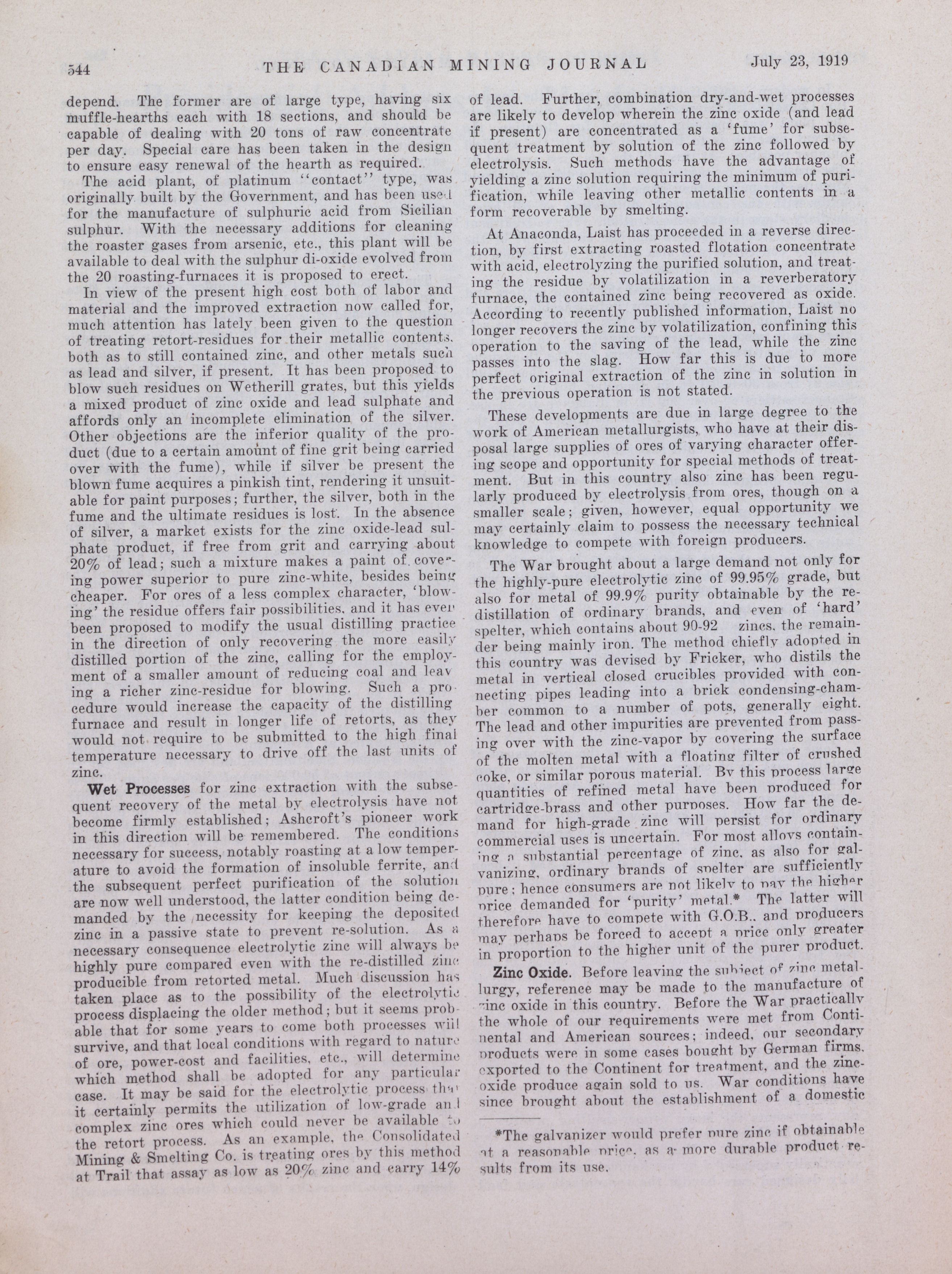 The Canadian Mining Journal : Vol. XL, No. 29 (July 23, 1919)