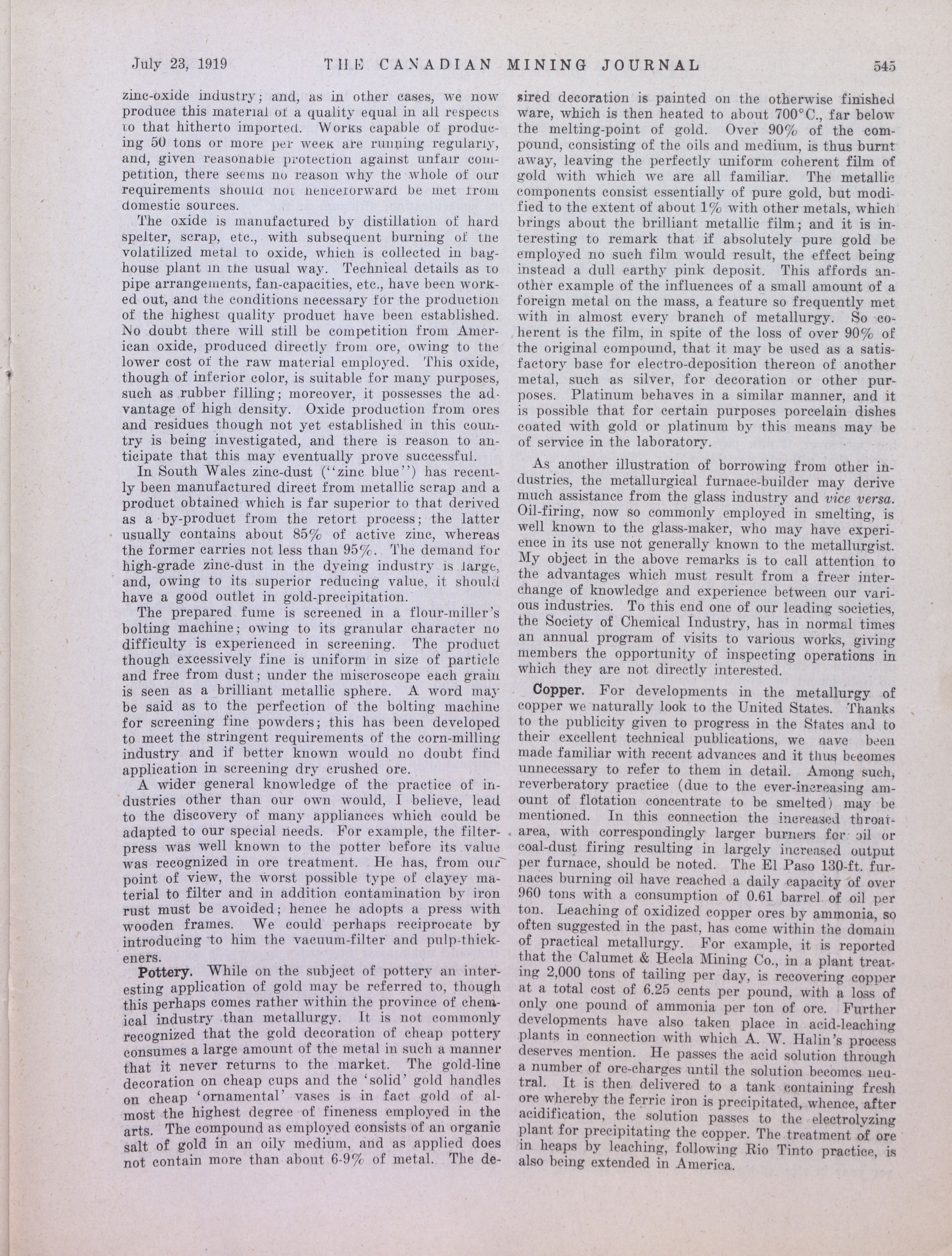 The Canadian Mining Journal : Vol. XL, No. 29 (July 23, 1919)