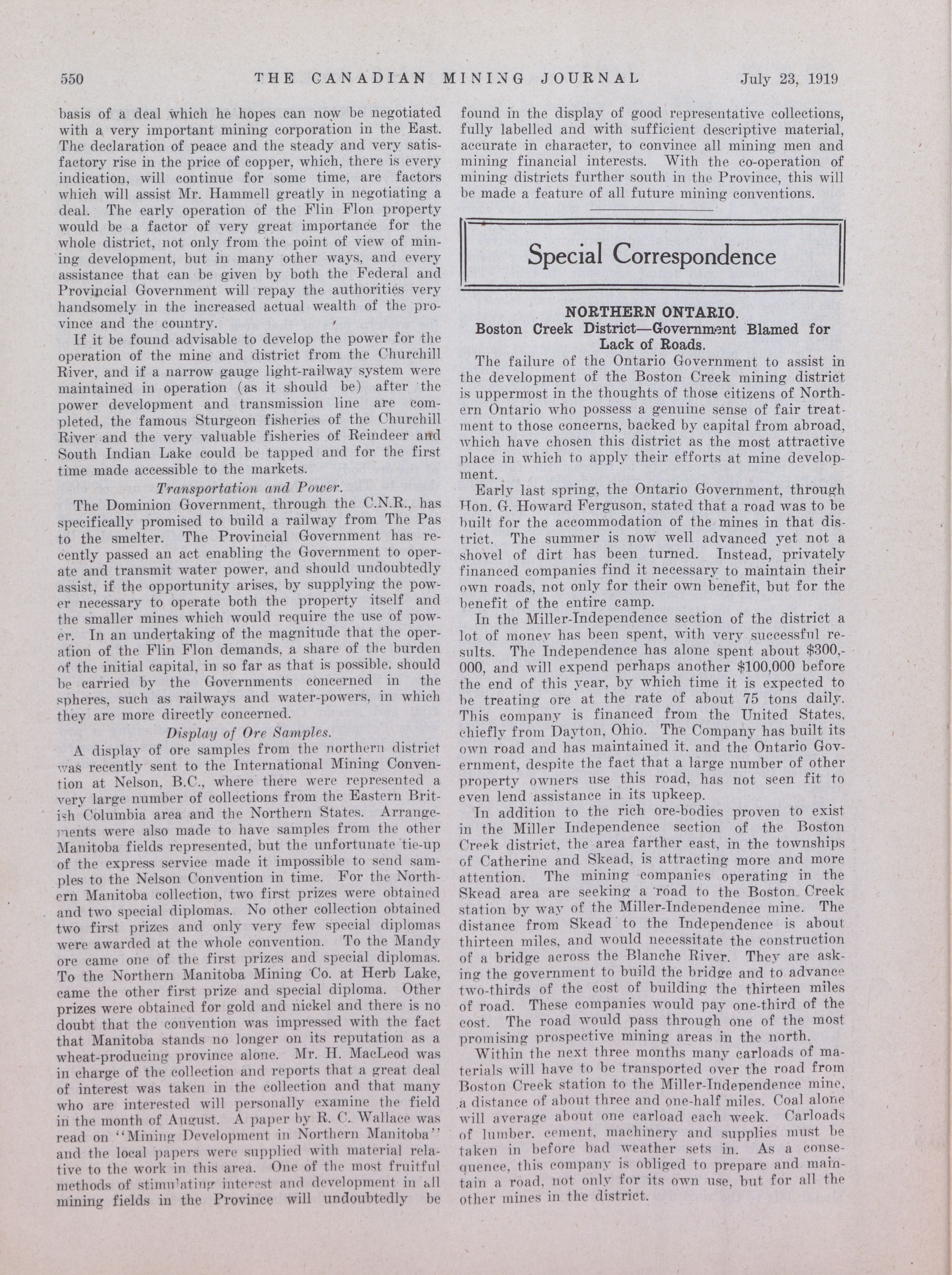 The Canadian Mining Journal : Vol. XL, No. 29 (July 23, 1919)