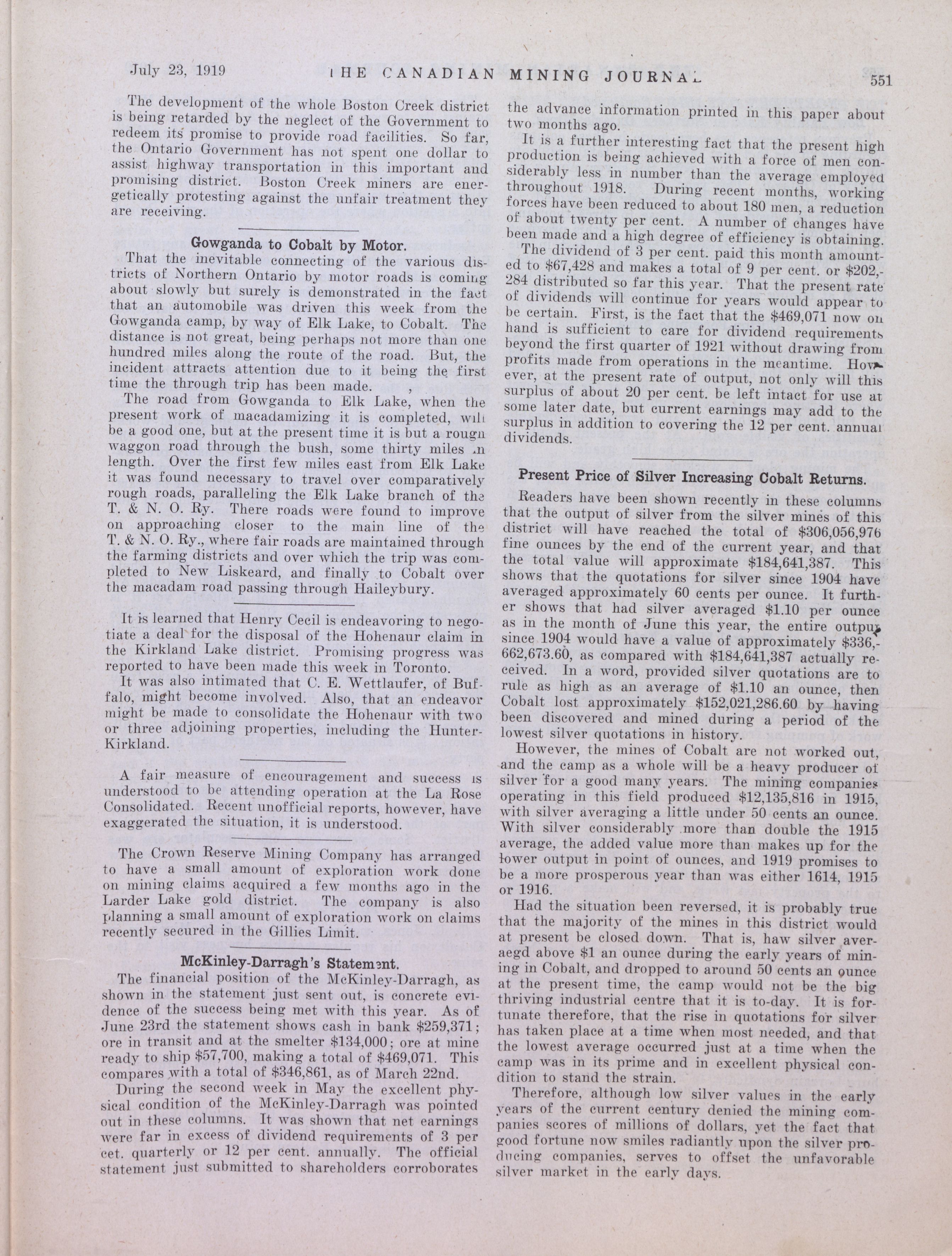 The Canadian Mining Journal : Vol. XL, No. 29 (July 23, 1919)