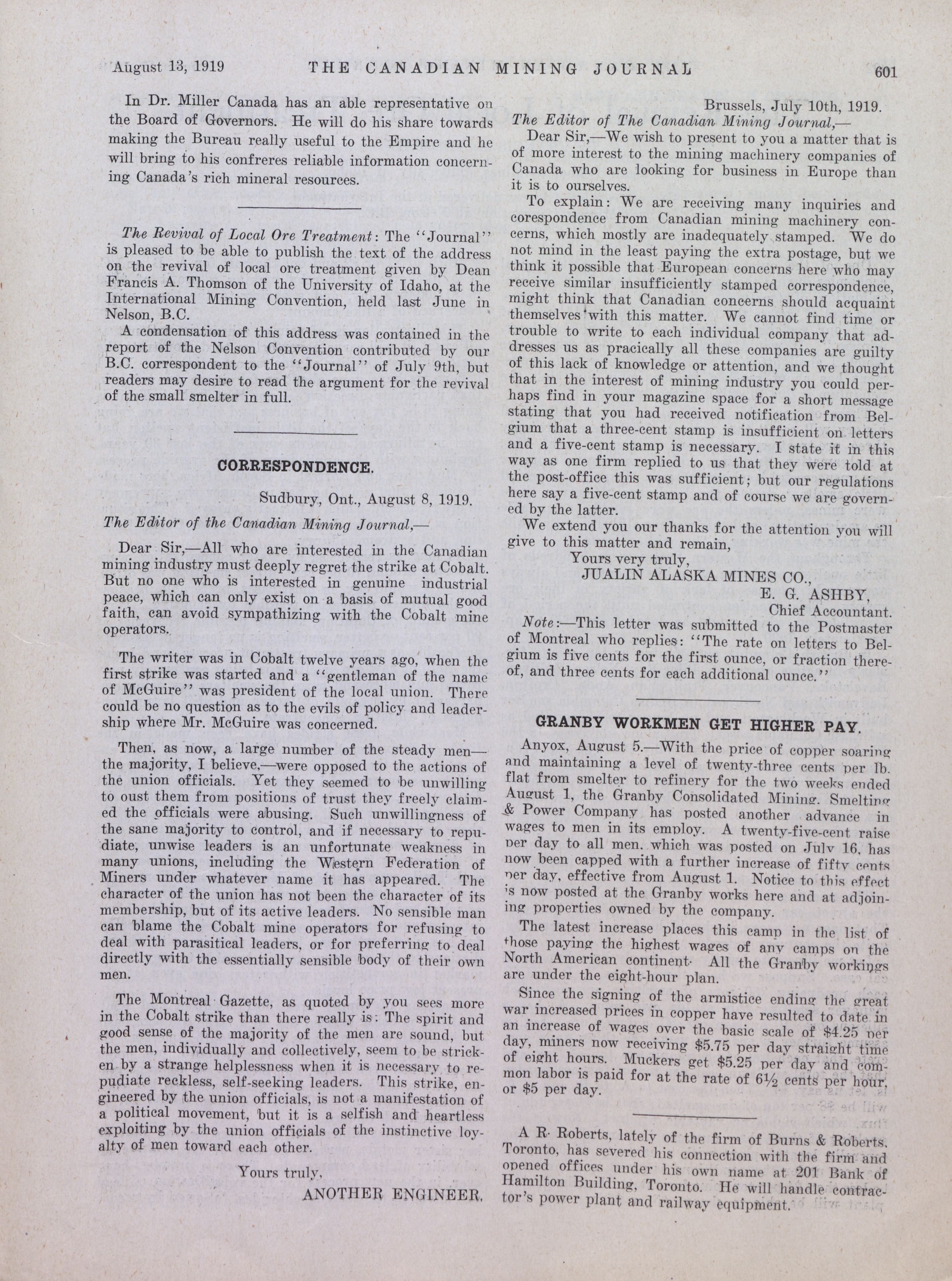 The Canadian Mining Journal : Vol. XL, No. 32 (August 13, 1919)