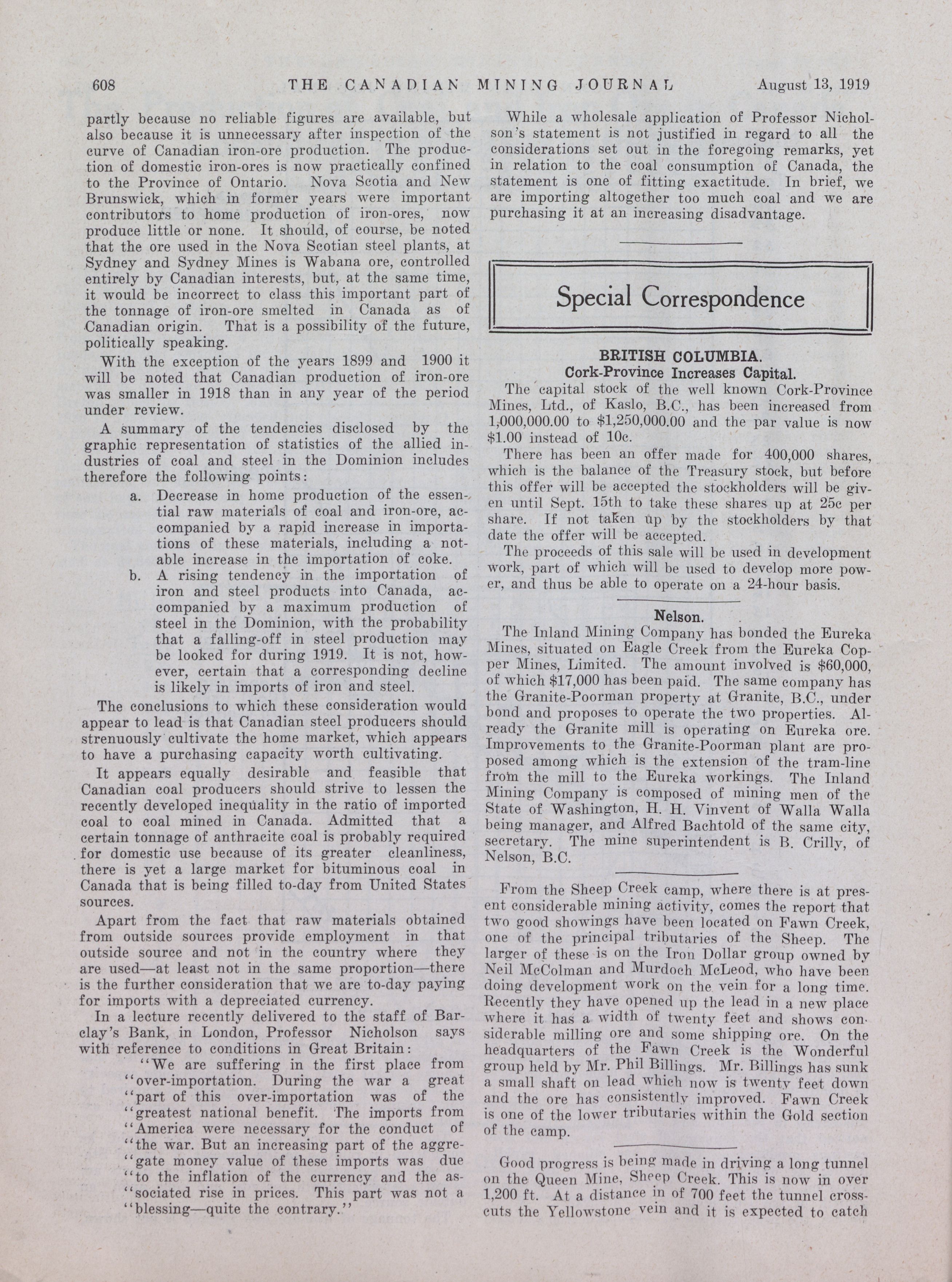 The Canadian Mining Journal : Vol. XL, No. 32 (August 13, 1919)