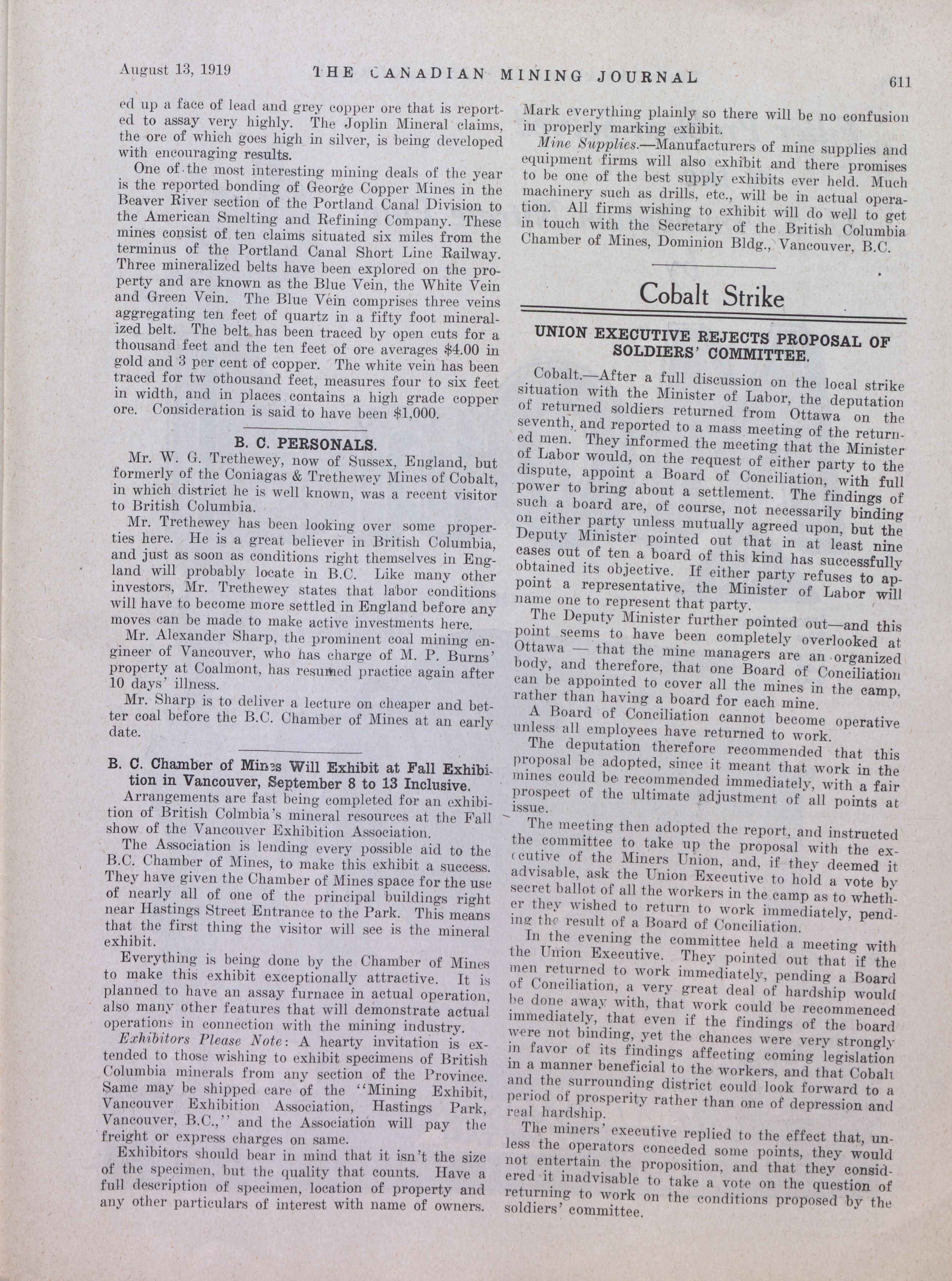The Canadian Mining Journal : Vol. XL, No. 32 (August 13, 1919)