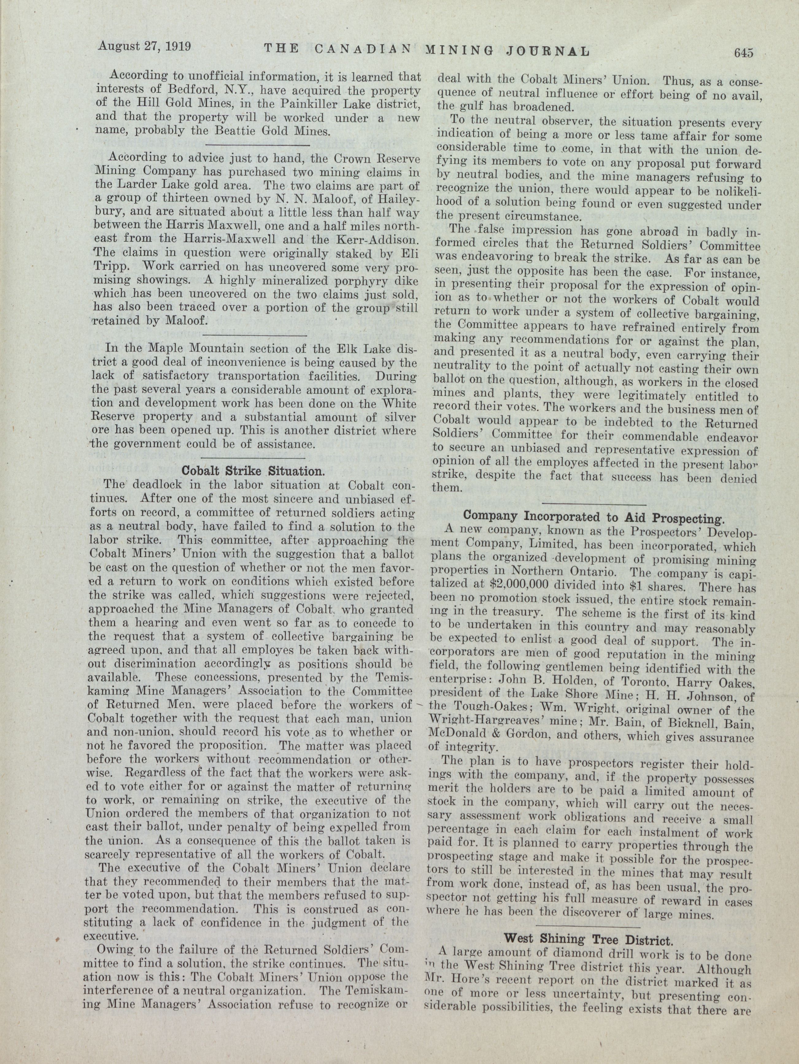 The Canadian Mining Journal : Vol. XL, No. 34 (August 27, 1919)