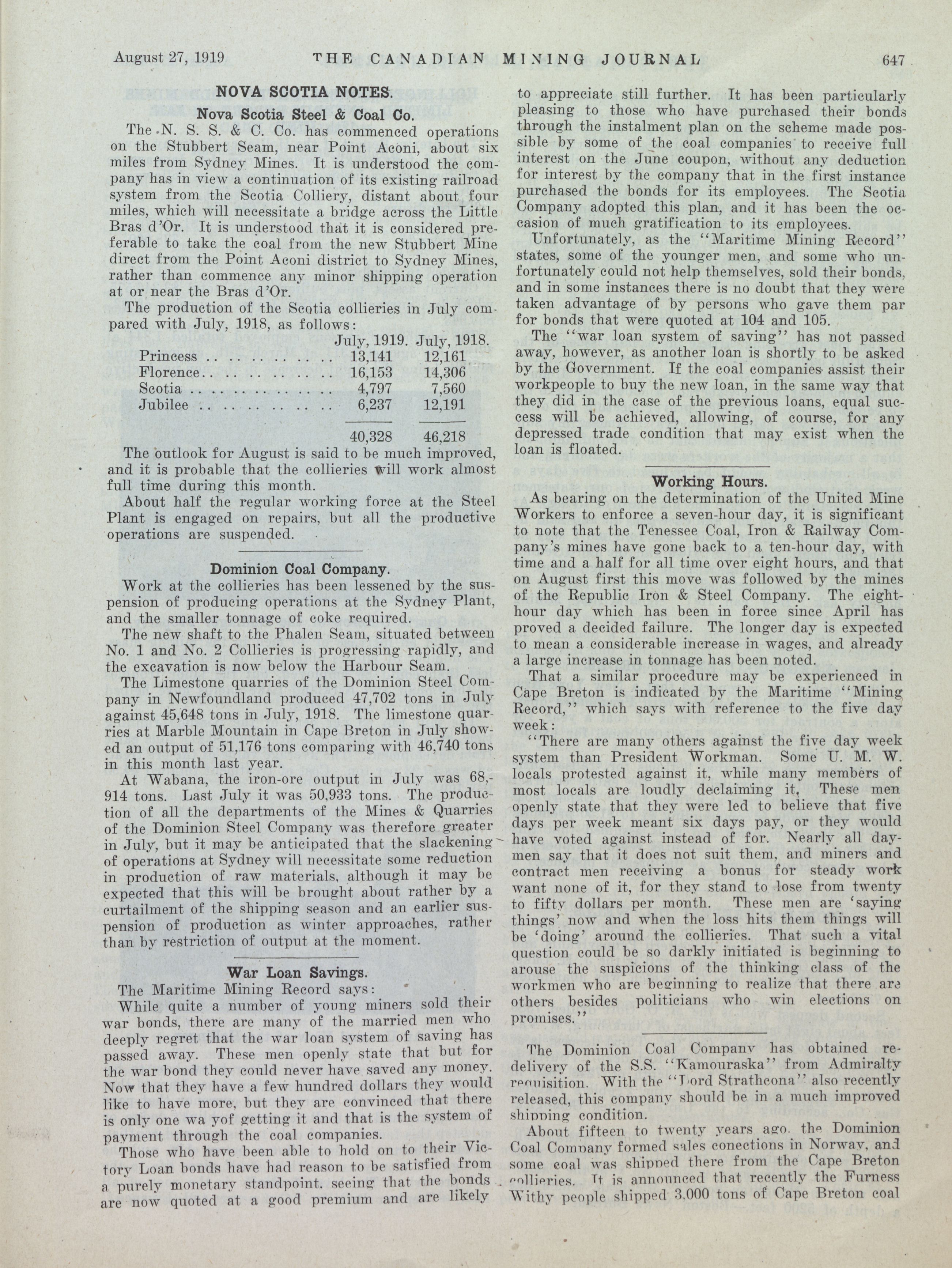 The Canadian Mining Journal : Vol. XL, No. 34 (August 27, 1919)