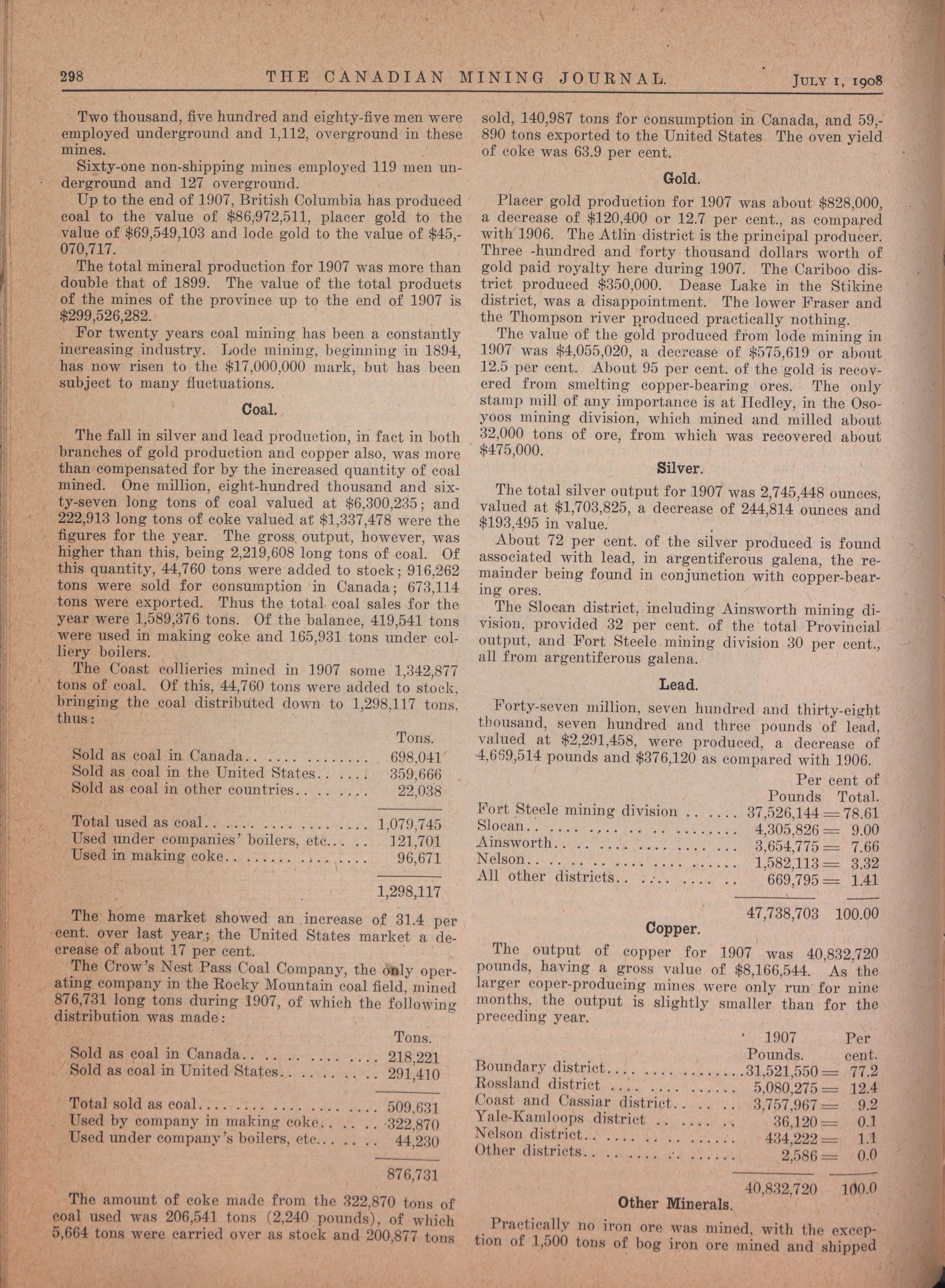 The Canadian Mining Journal : Vol. XXIX, No. 13 (July 1, 1908)