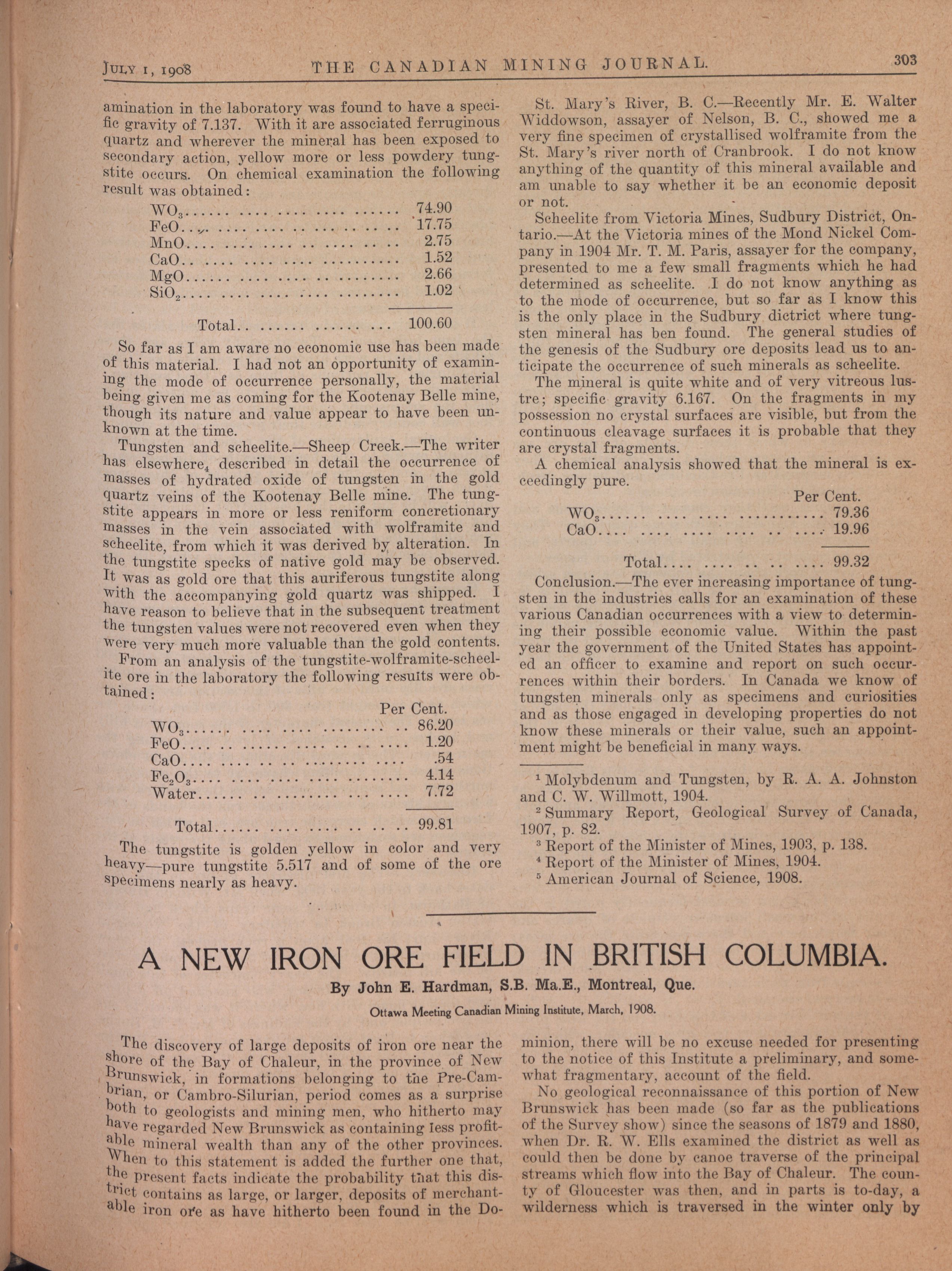 The Canadian Mining Journal : Vol. XXIX, No. 13 (July 1, 1908)