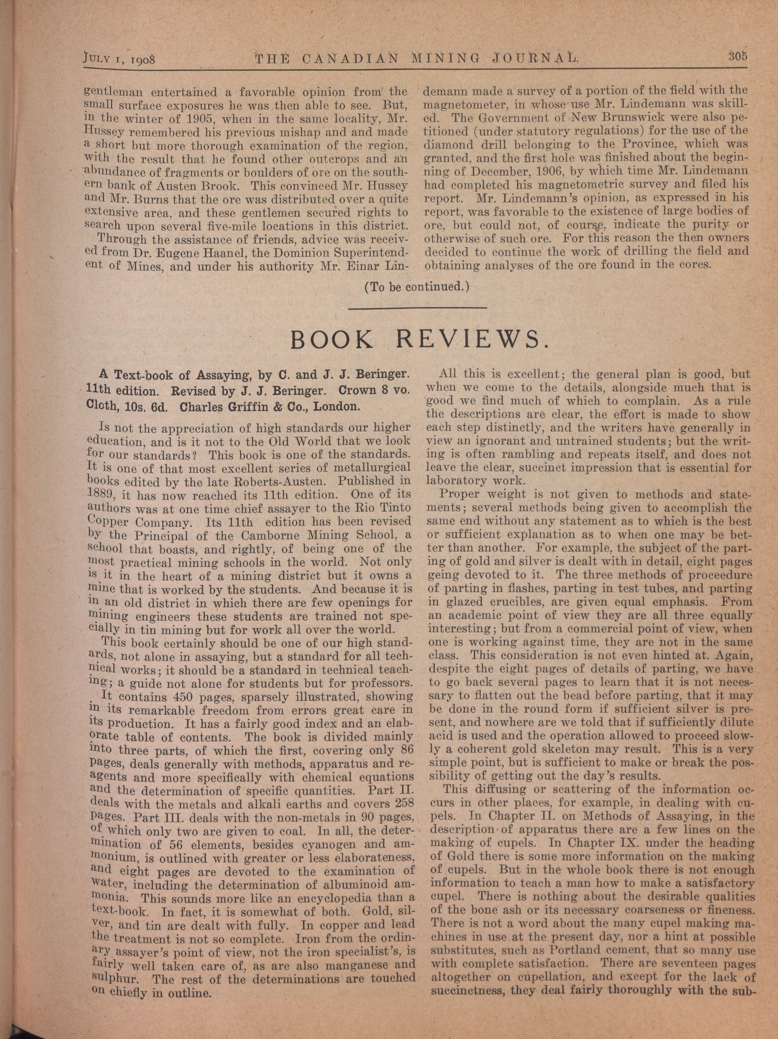 The Canadian Mining Journal : Vol. XXIX, No. 13 (July 1, 1908)