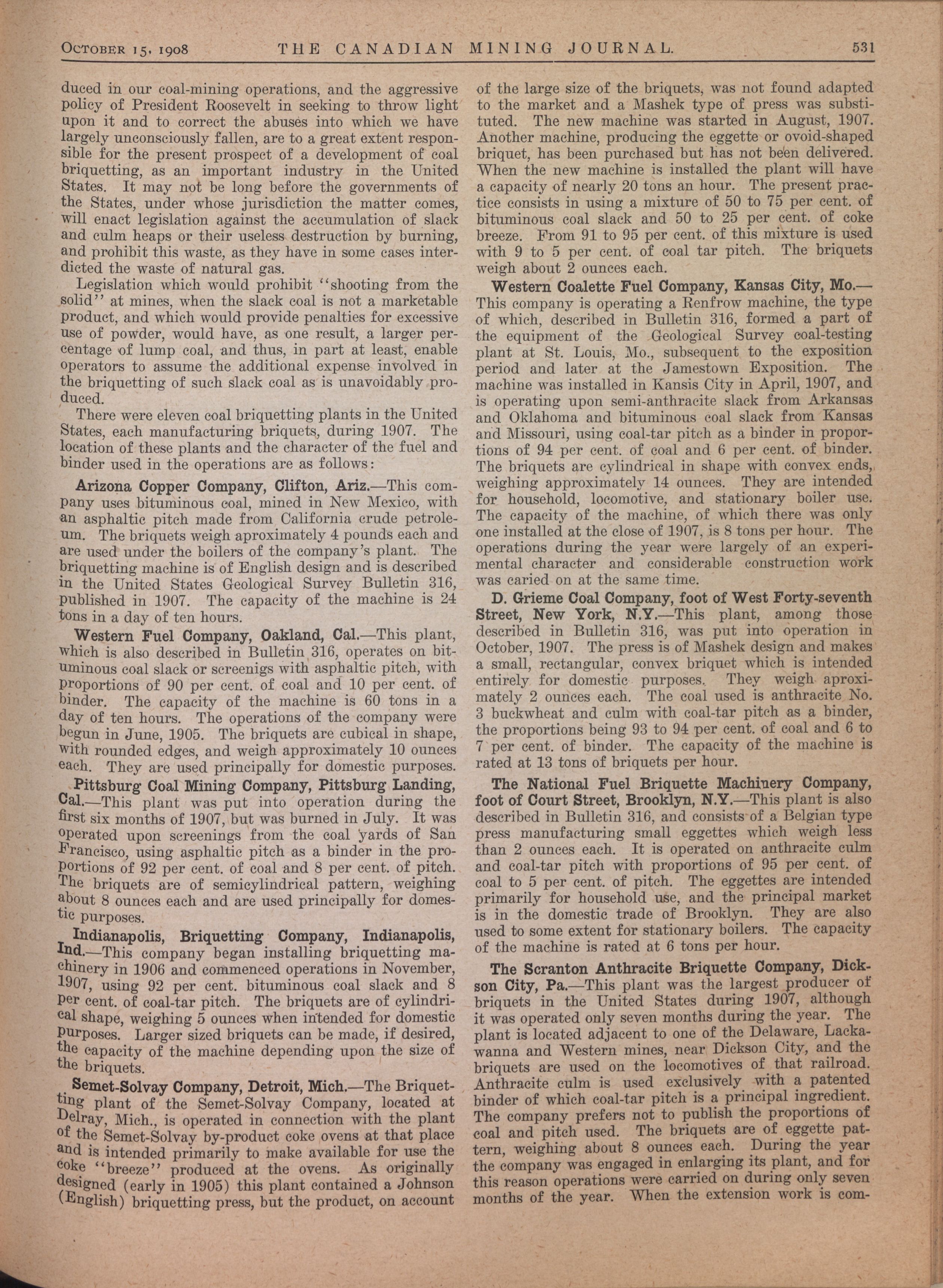 The Canadian Mining Journal : Vol. XXIX, No. 20 (October 15, 1908)