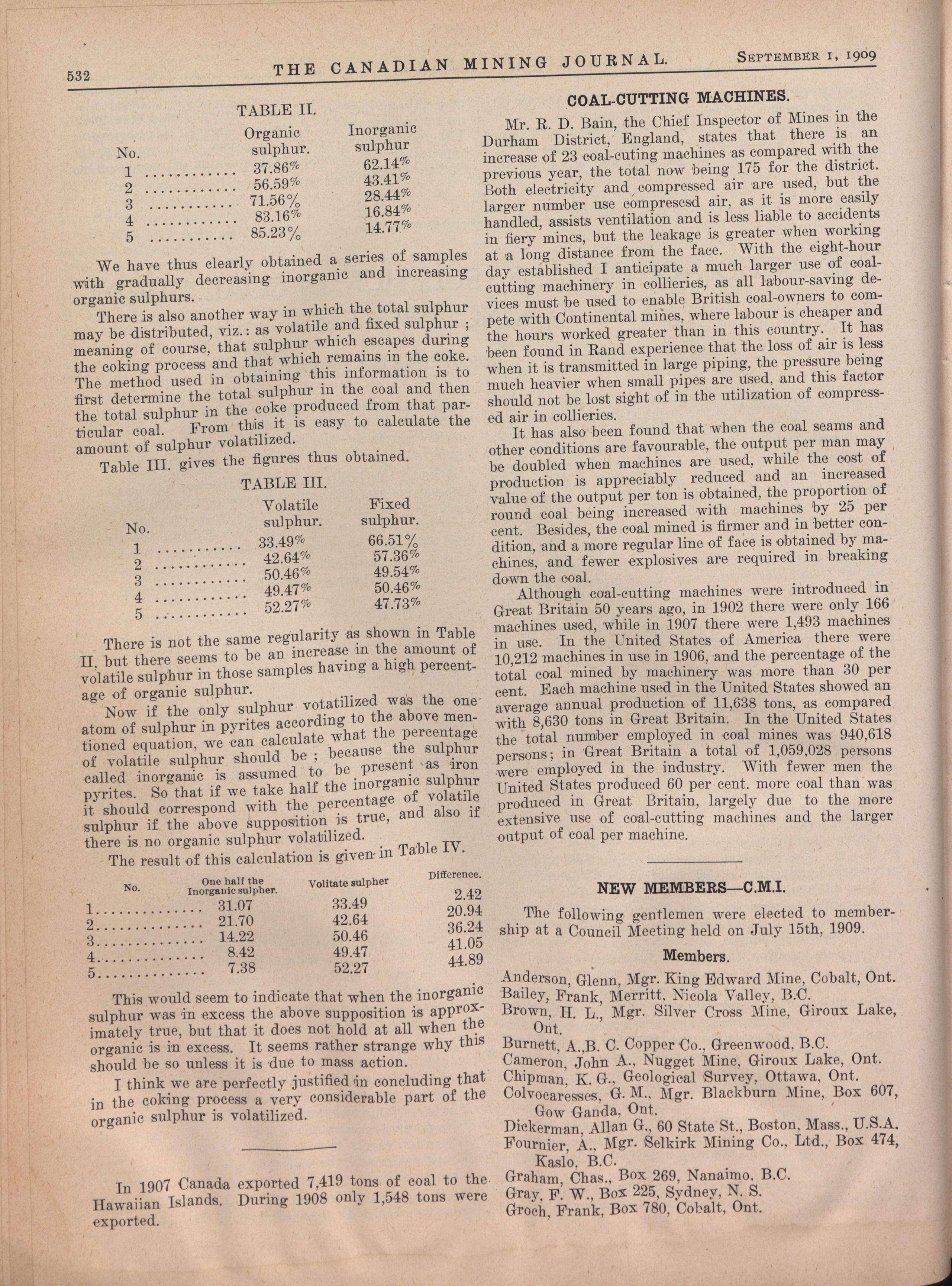 The Canadian Mining Journal : Vol. XXX, No. 17 (September 1, 1909)