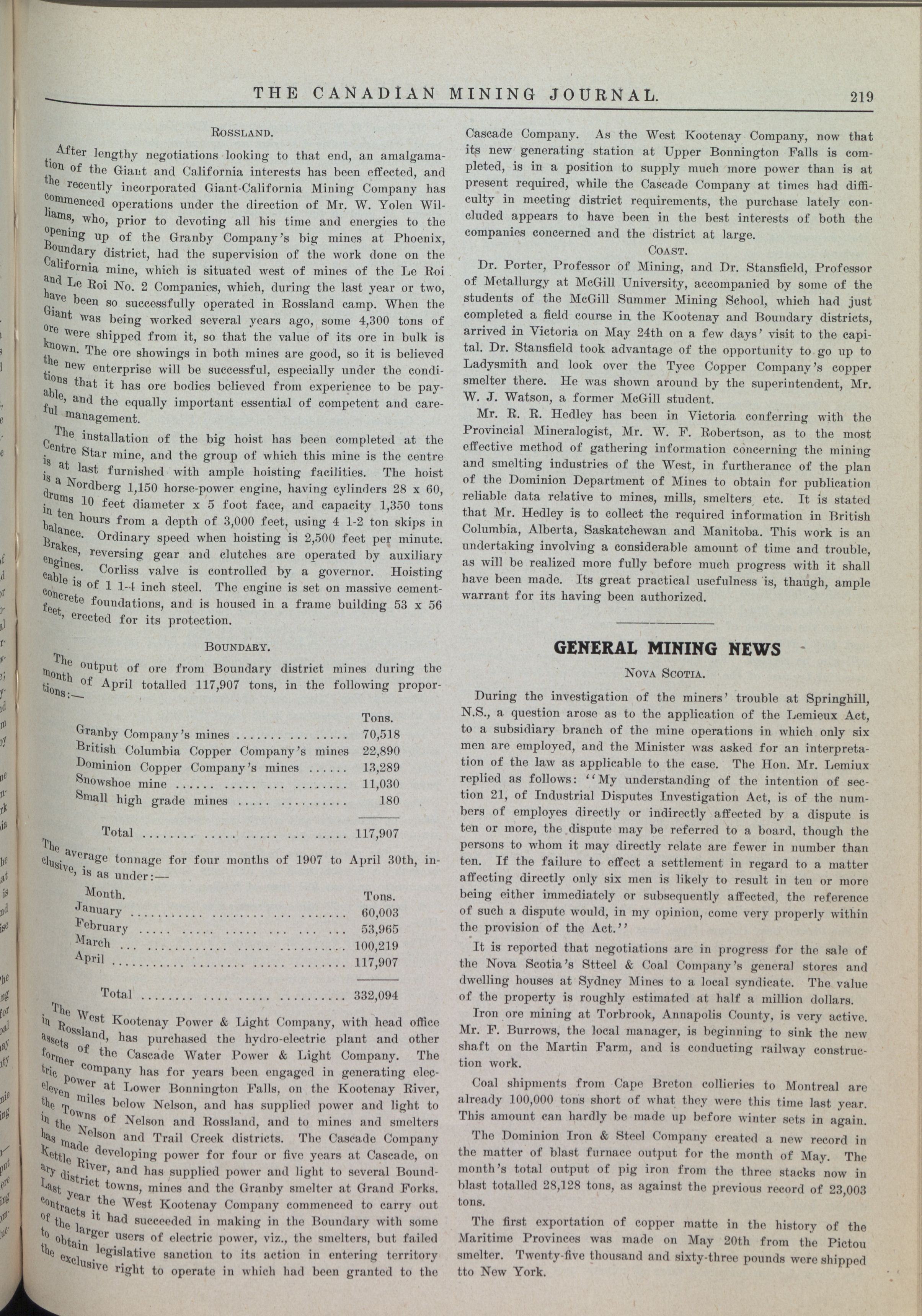 The Canadian Mining Journal : Old Series, Volume xxviii, No. 9 (June 15, 1907)
