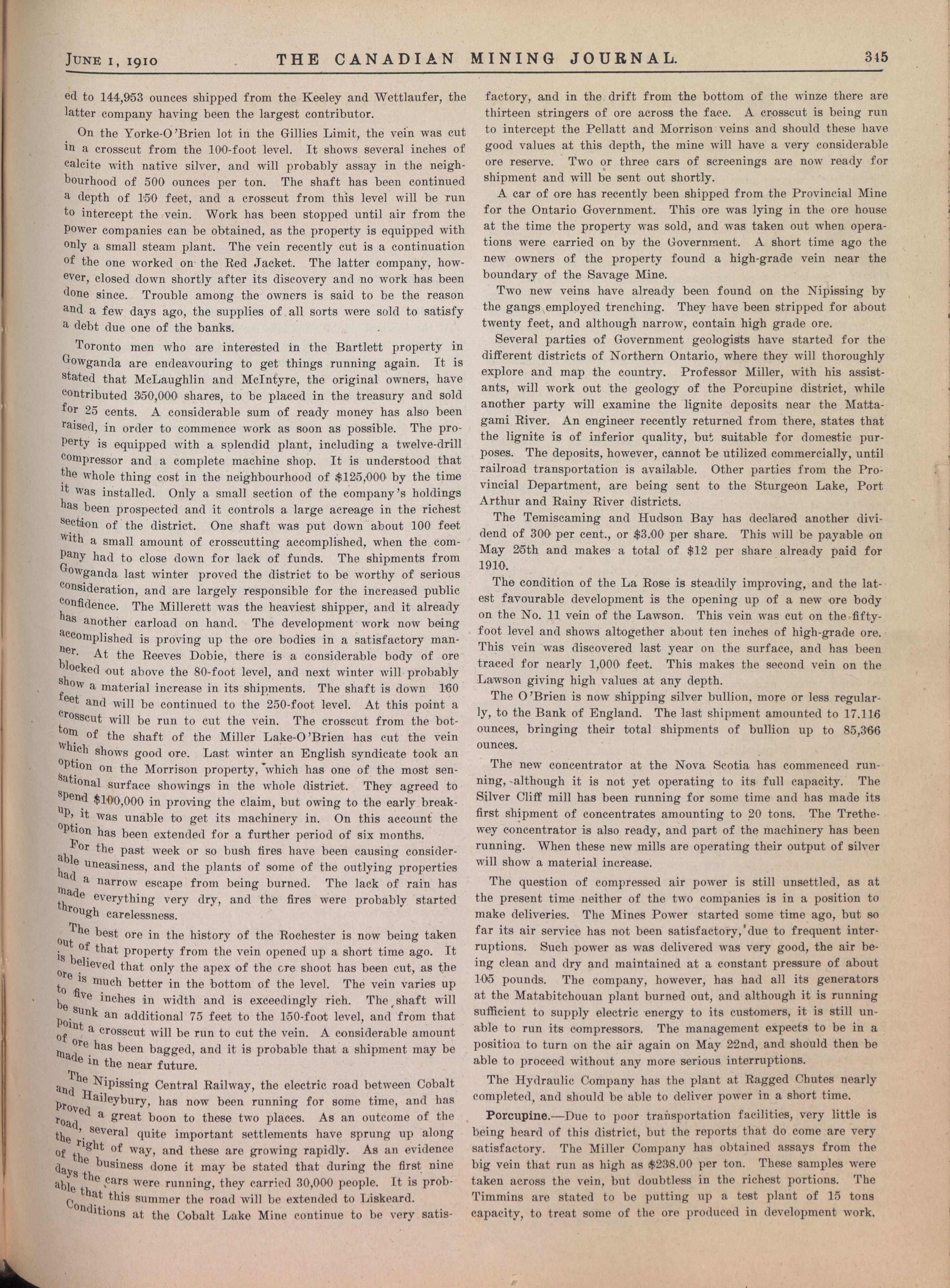 The Canadian Mining Journal : Vol. XXXI, No. 11 (June 1, 1910)