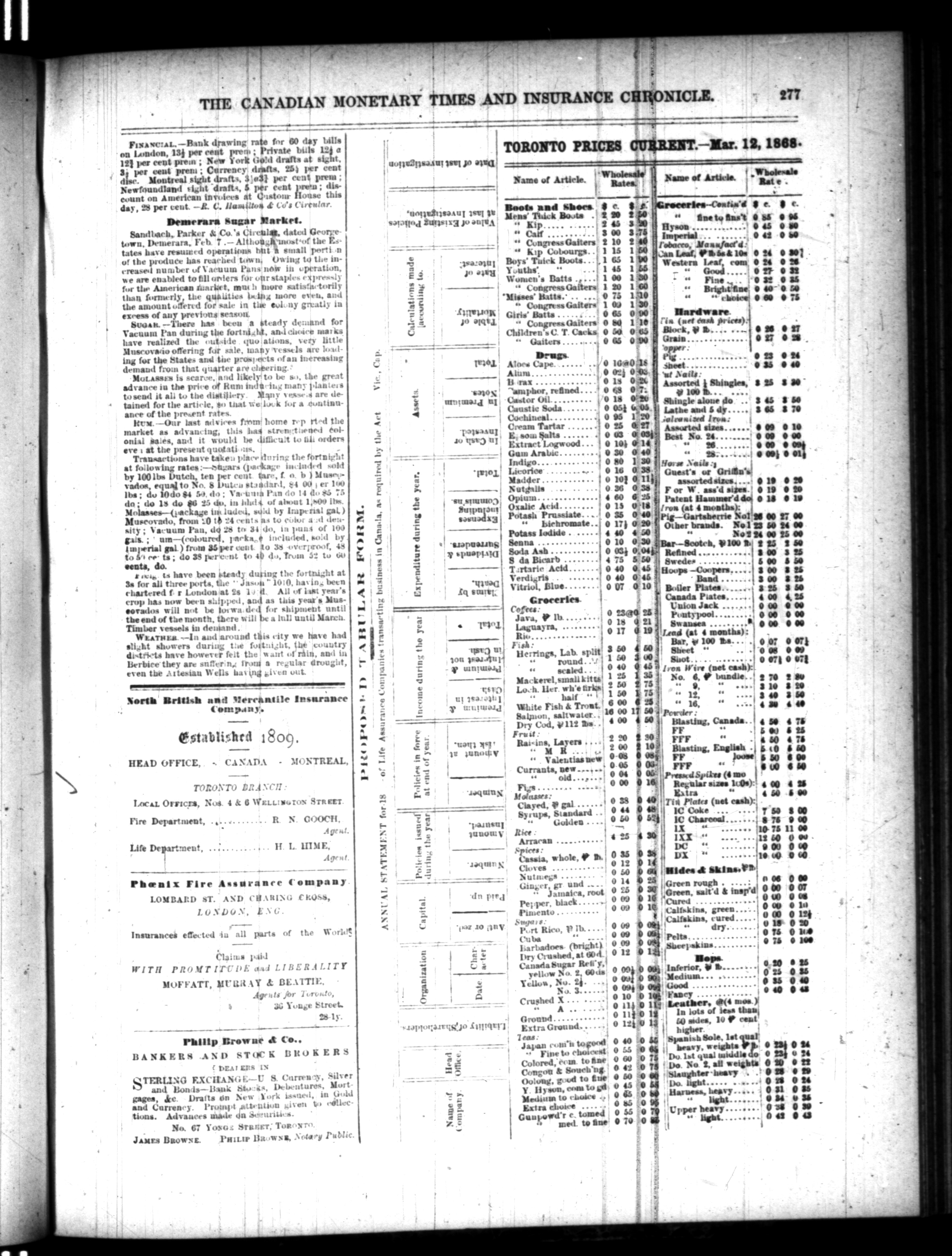 The Canadian Monetary Times and insurance chronicle : Vol. I, No. 30 (March 12, 1868)