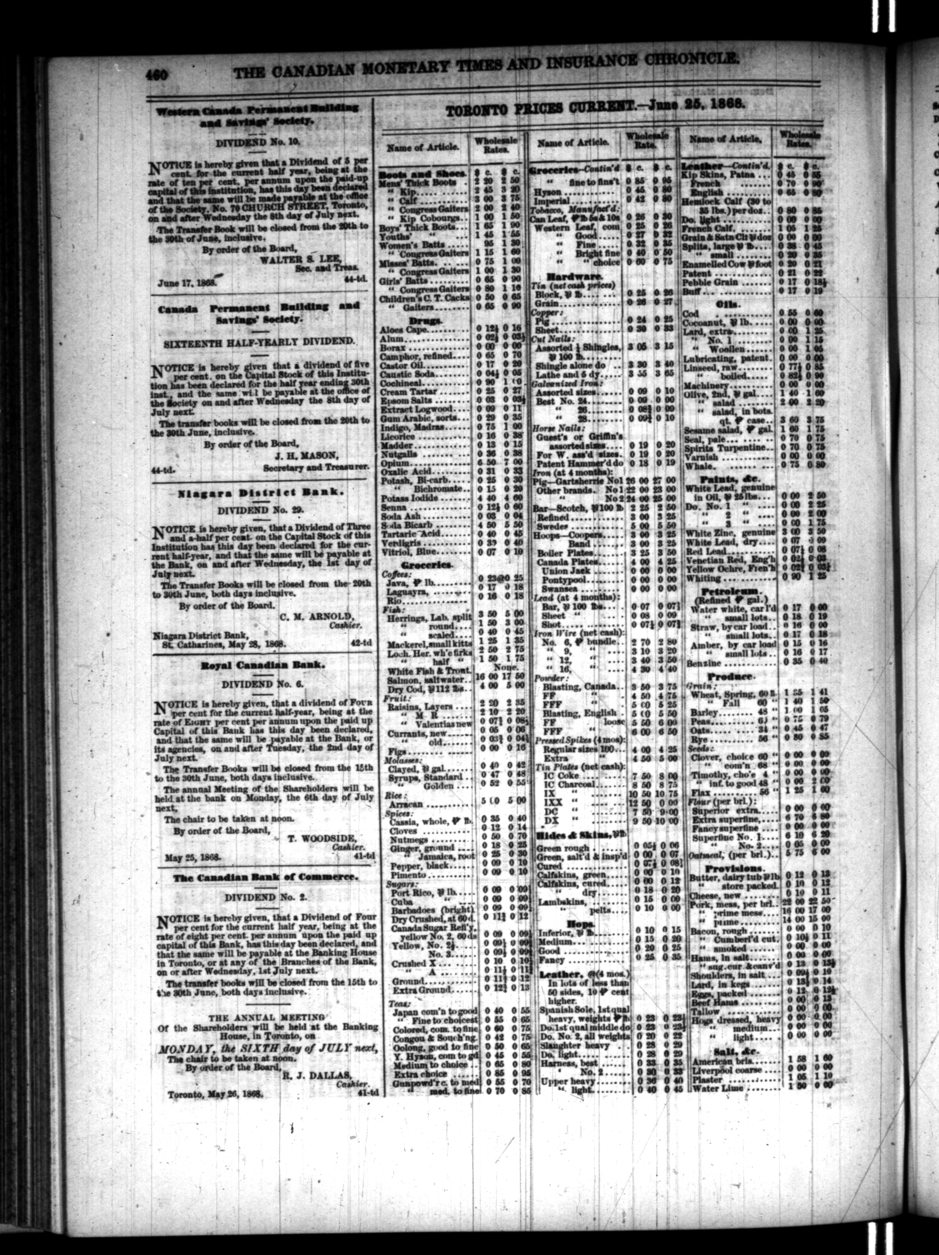The Canadian Monetary Times and insurance chronicle : Vol. I, No. 45 (June 25, 1868)