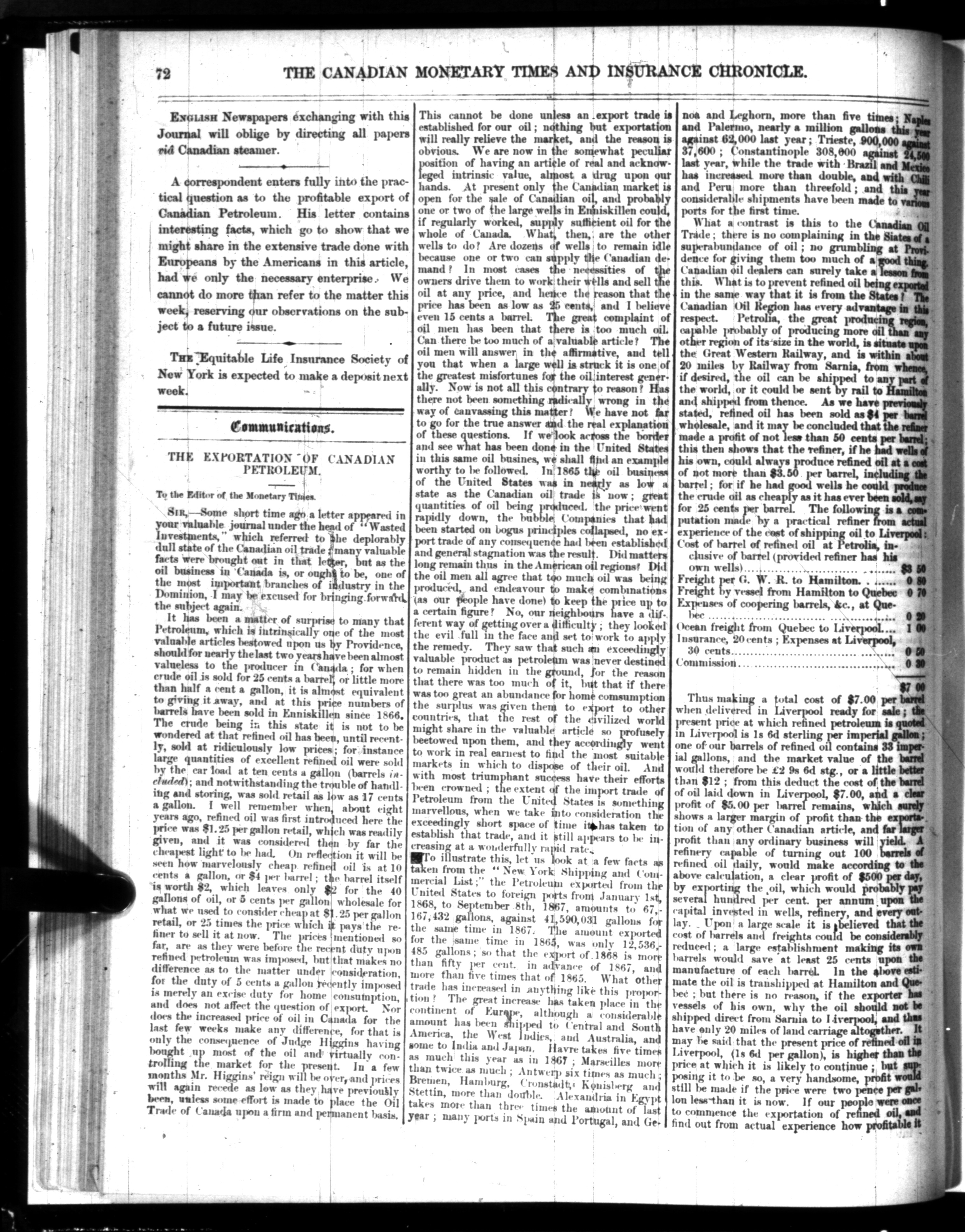 The Canadian Monetary Times and insurance chronicle : Vol. II, No. 5 (September 17, 1868)