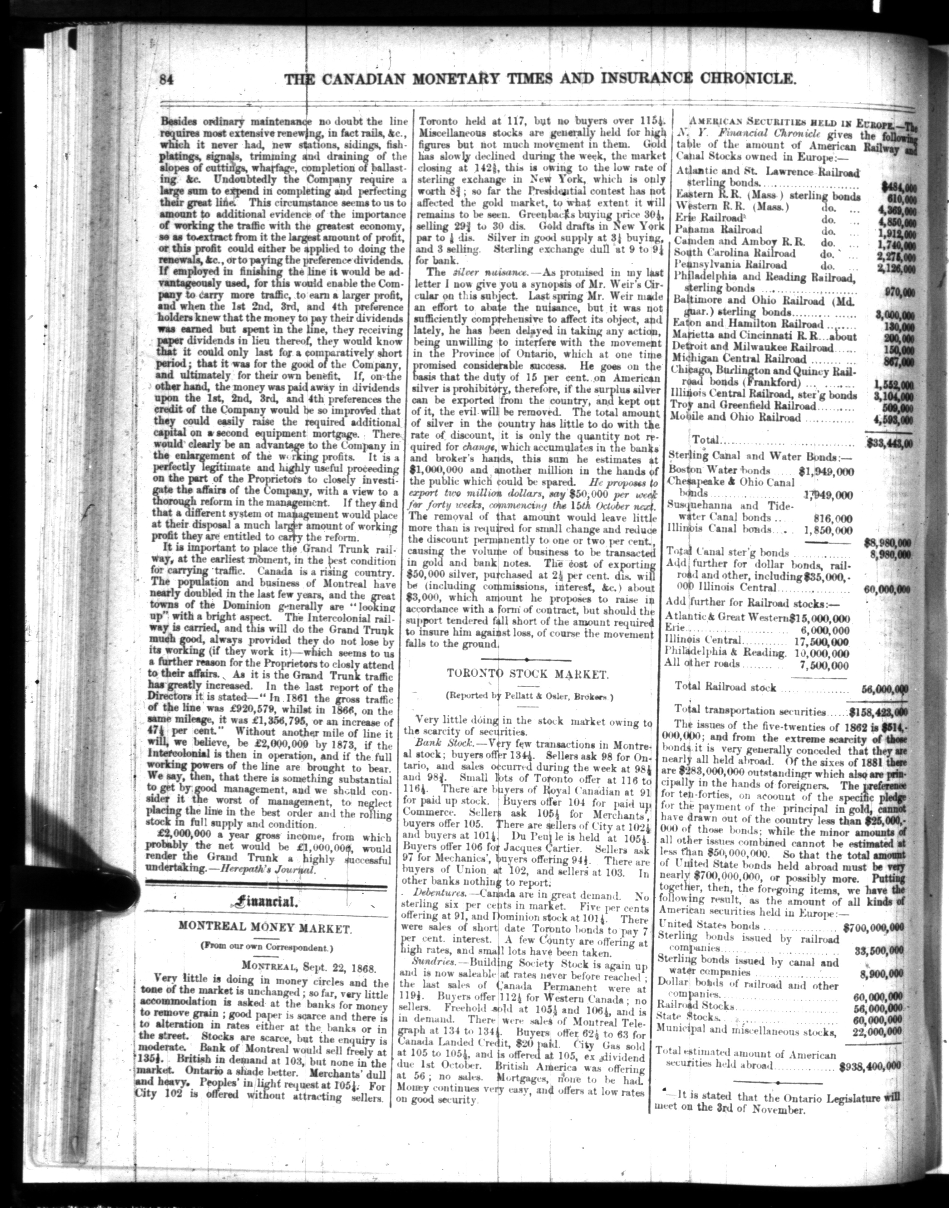 The Canadian Monetary Times and insurance chronicle : Vol. II, No. 6 (September 24, 1868)