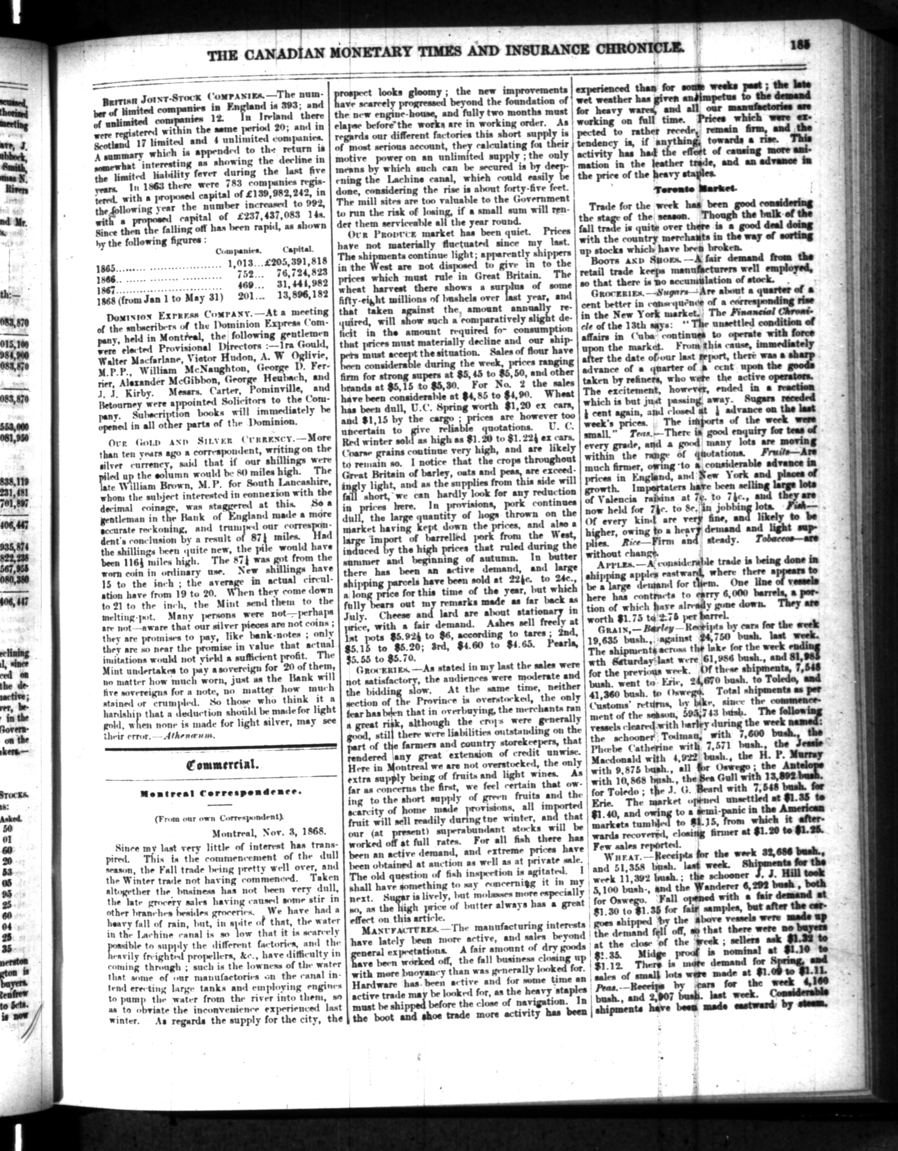 The Canadian Monetary Times and insurance chronicle : Vol. II, No. 12 (November 5, 1868)