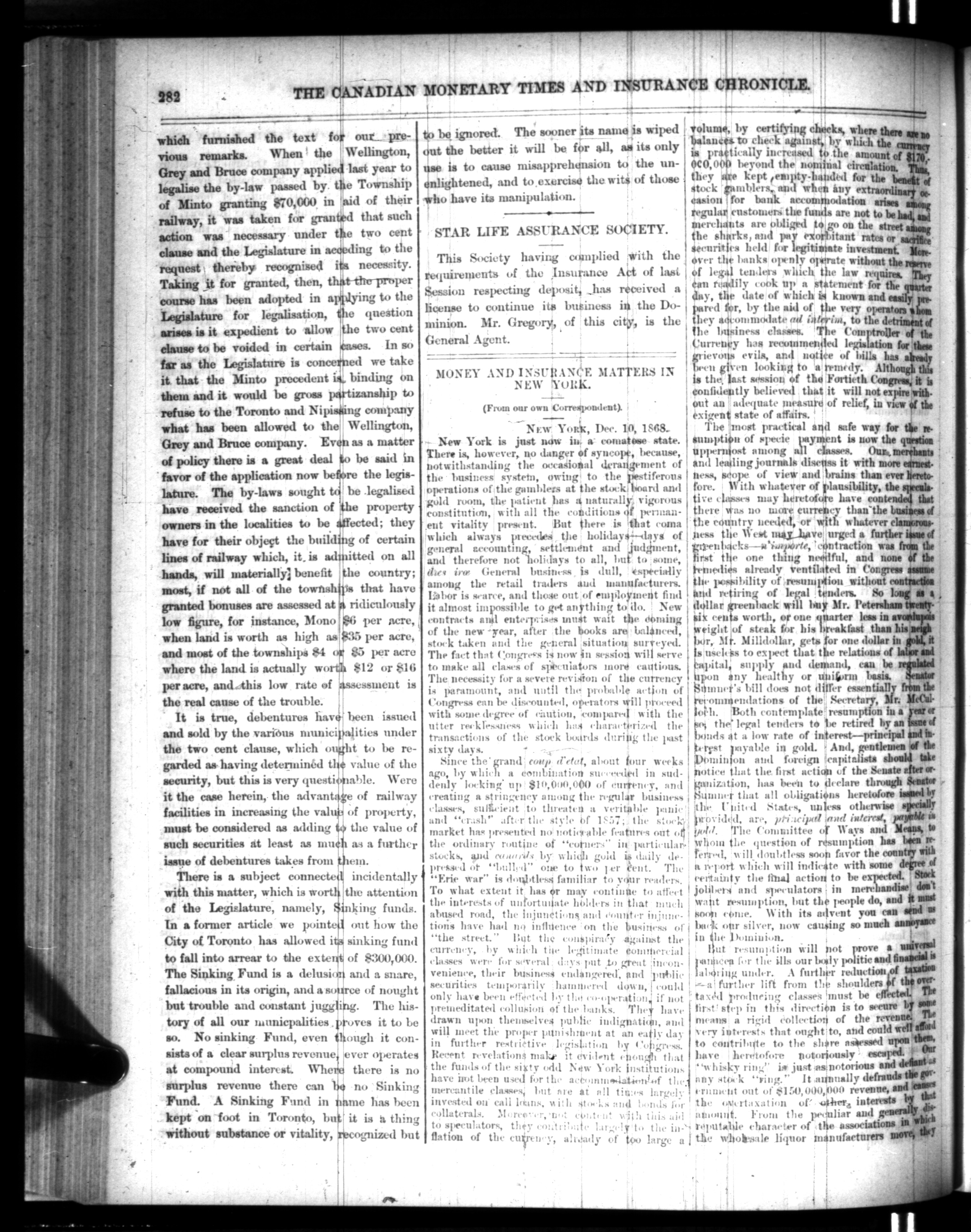 The Canadian Monetary Times and insurance chronicle : Vol. II, No. 18 (December 17, 1868)