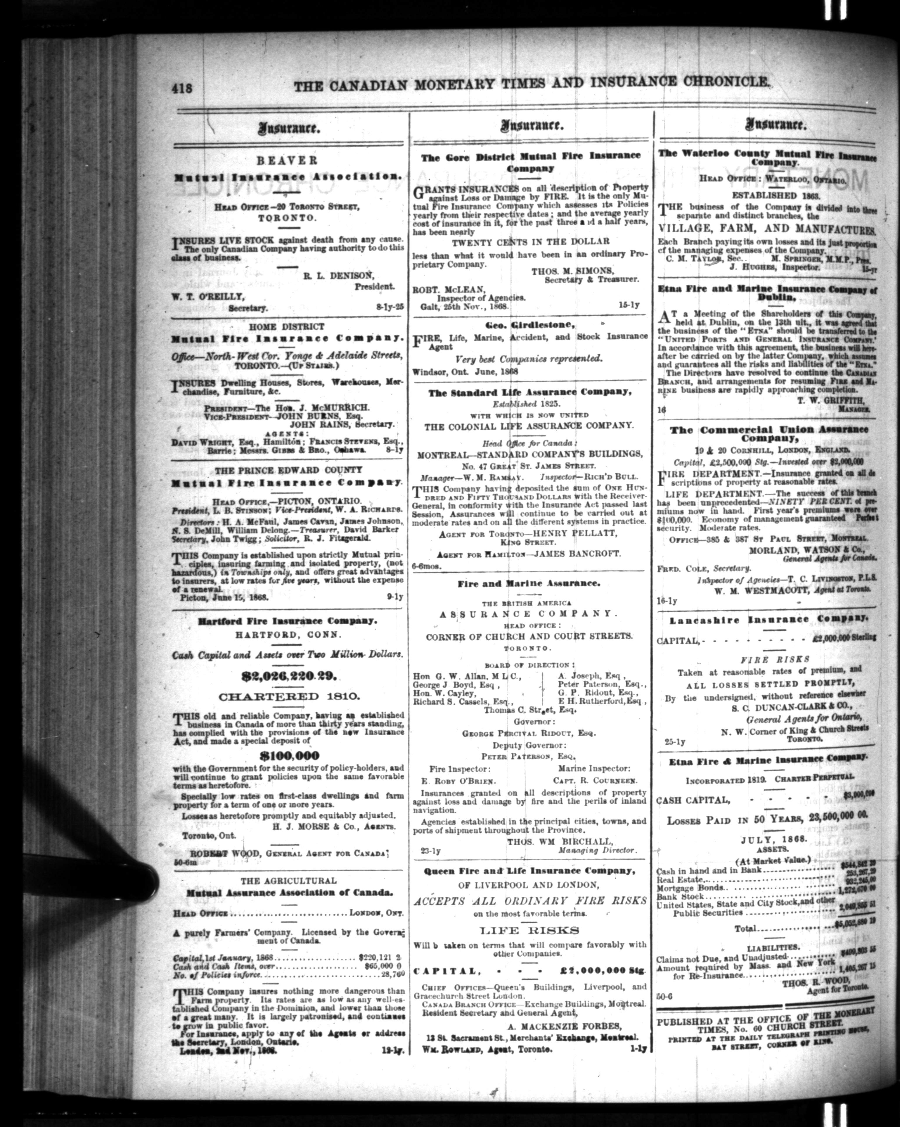 The Canadian Monetary Times and insurance chronicle : Vol. II, No. 26 (February 11, 1869)