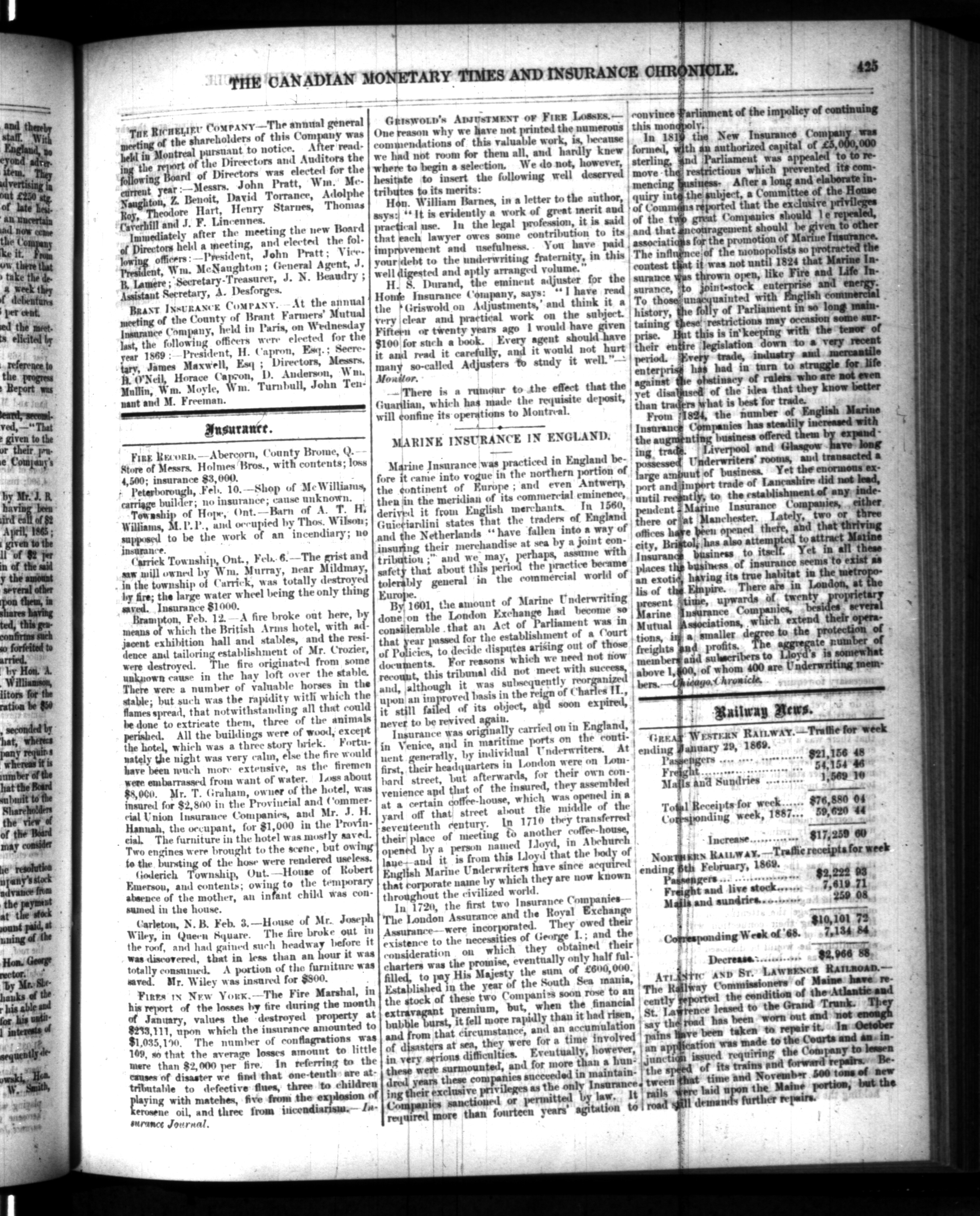 The Canadian Monetary Times and insurance chronicle : Vol. II, No. 27 (February 18, 1869)