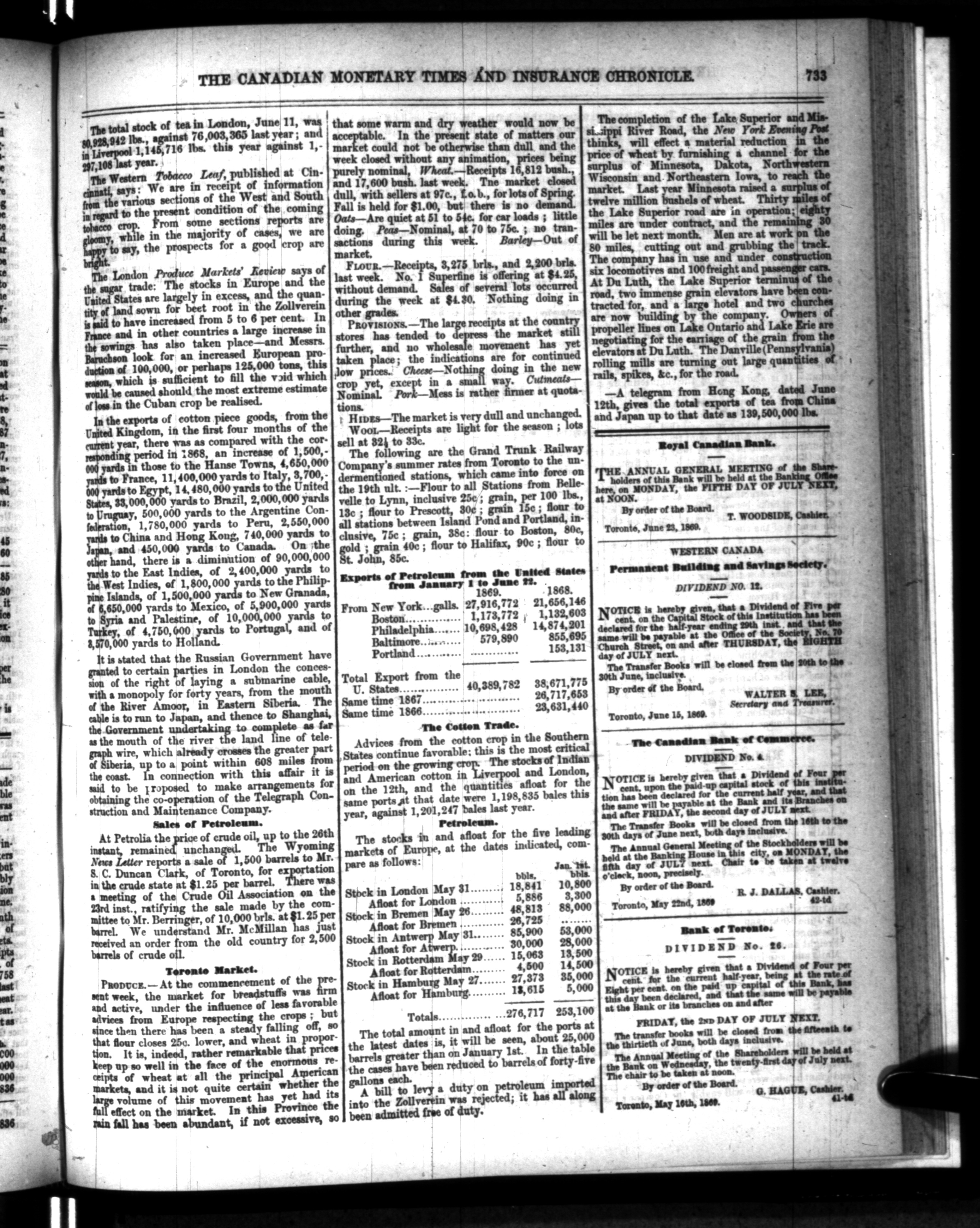 The Canadian Monetary Times and insurance chronicle : Vol. II, No. 46 (July 1, 1869)