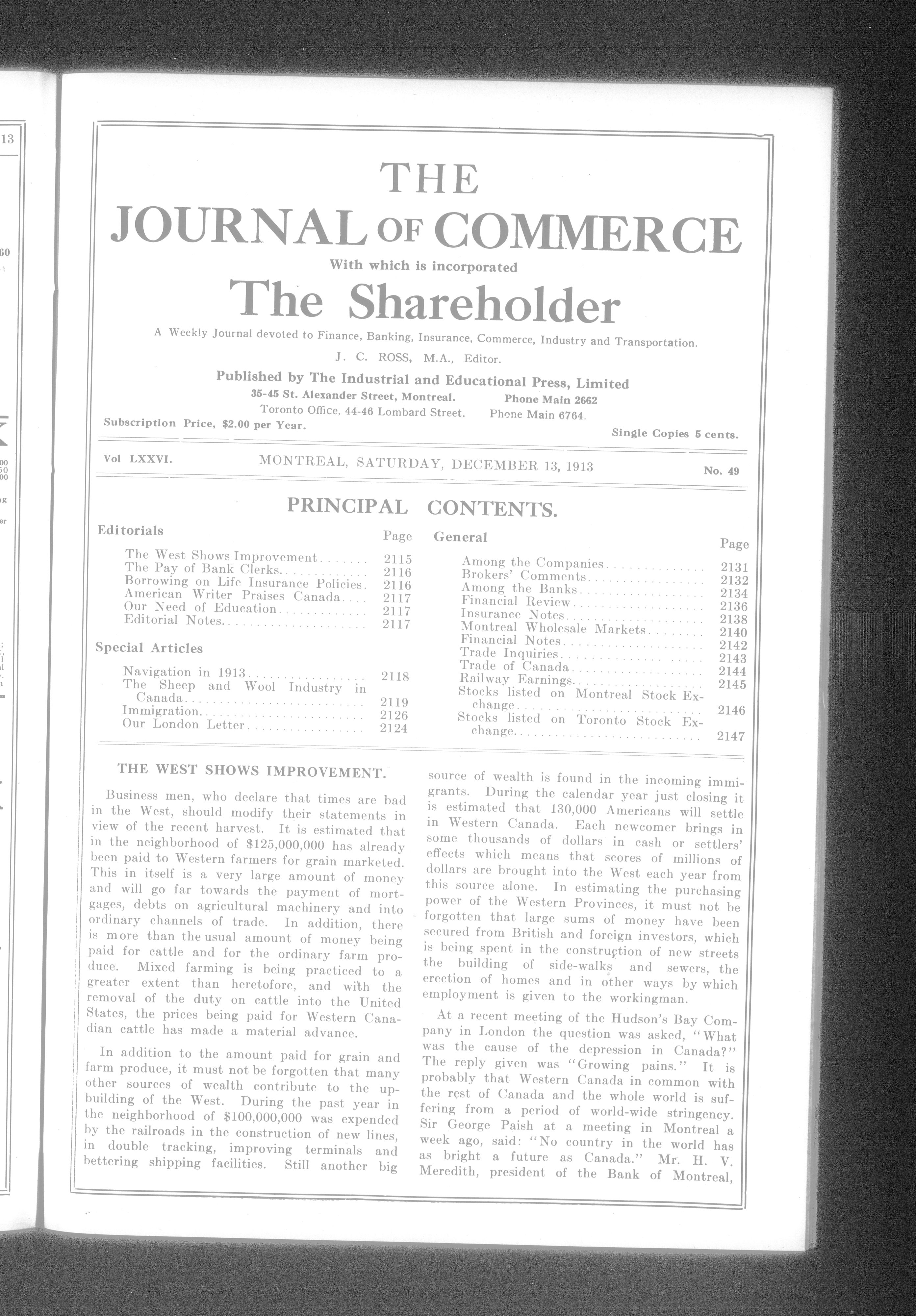 The Journal of Commerce and Shareholder : Vol. LXXVI, No. 49 [i.e. 50] (December 13, 1913)