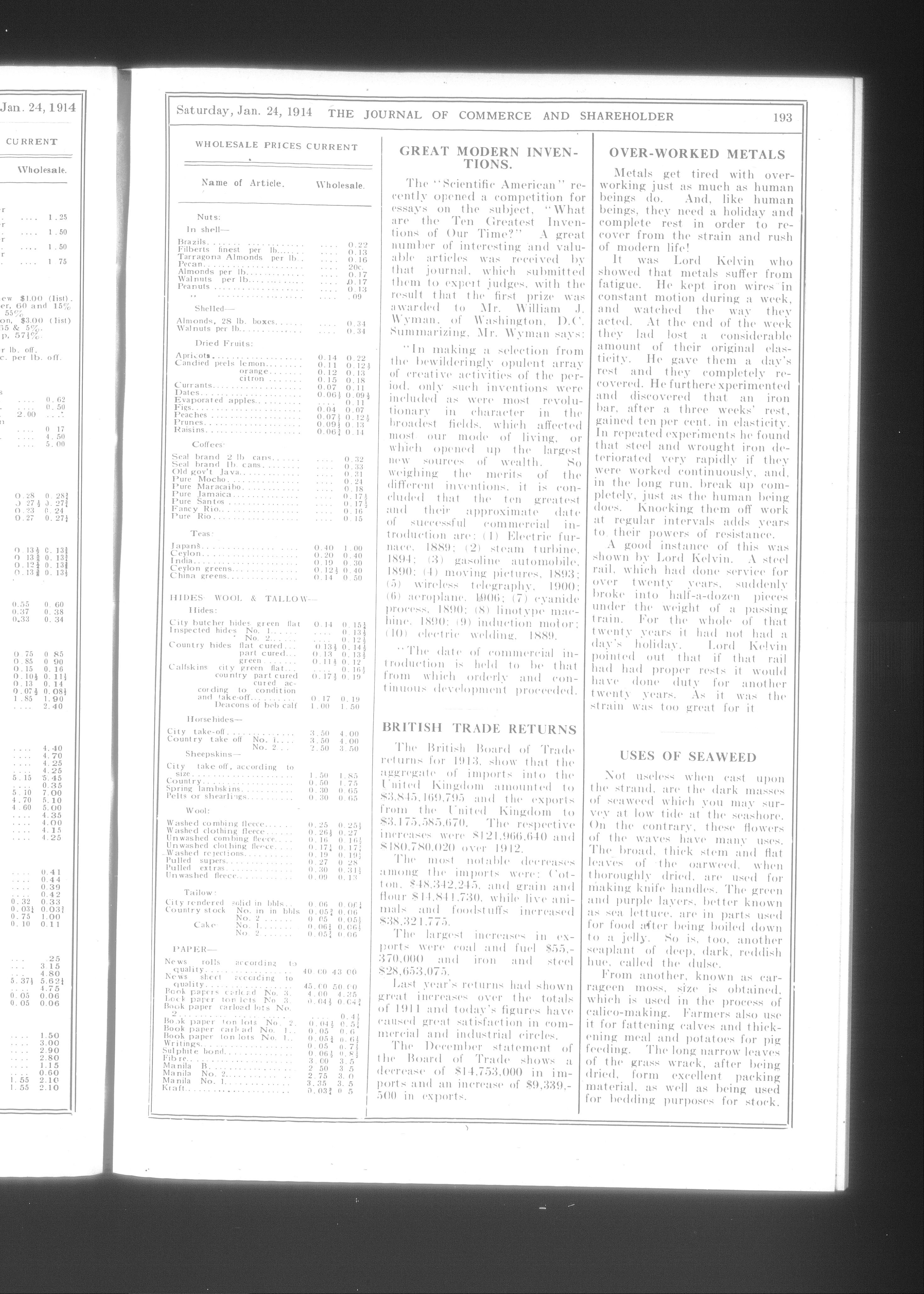 The Journal of Commerce and Shareholder : Vol. LXXVII, No. 4 (January 24, 1914)