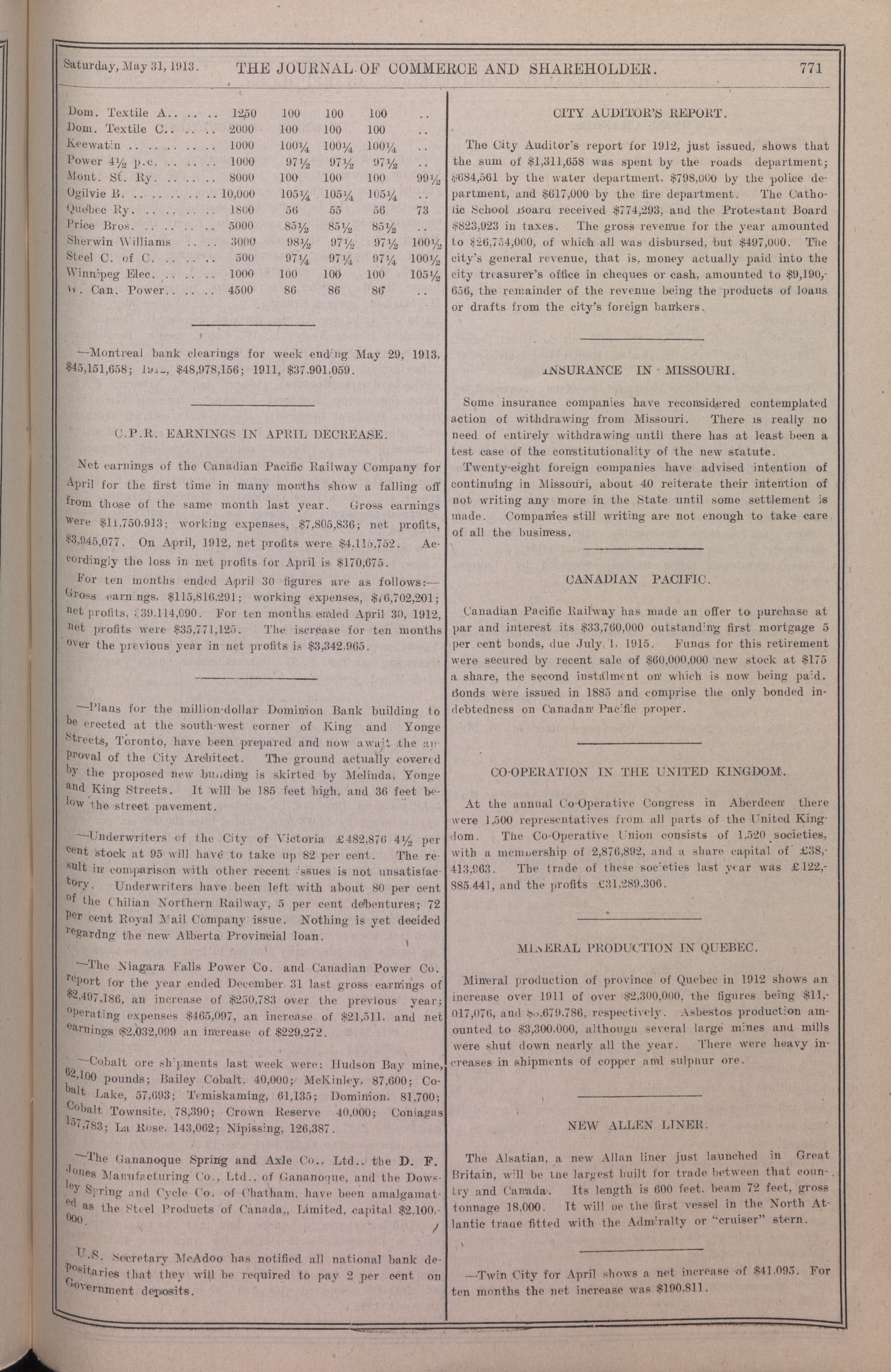 The Journal of Commerce and Shareholder : Vol. LXXVI, No. 21 [i.e. 22] (May 31, 1913)