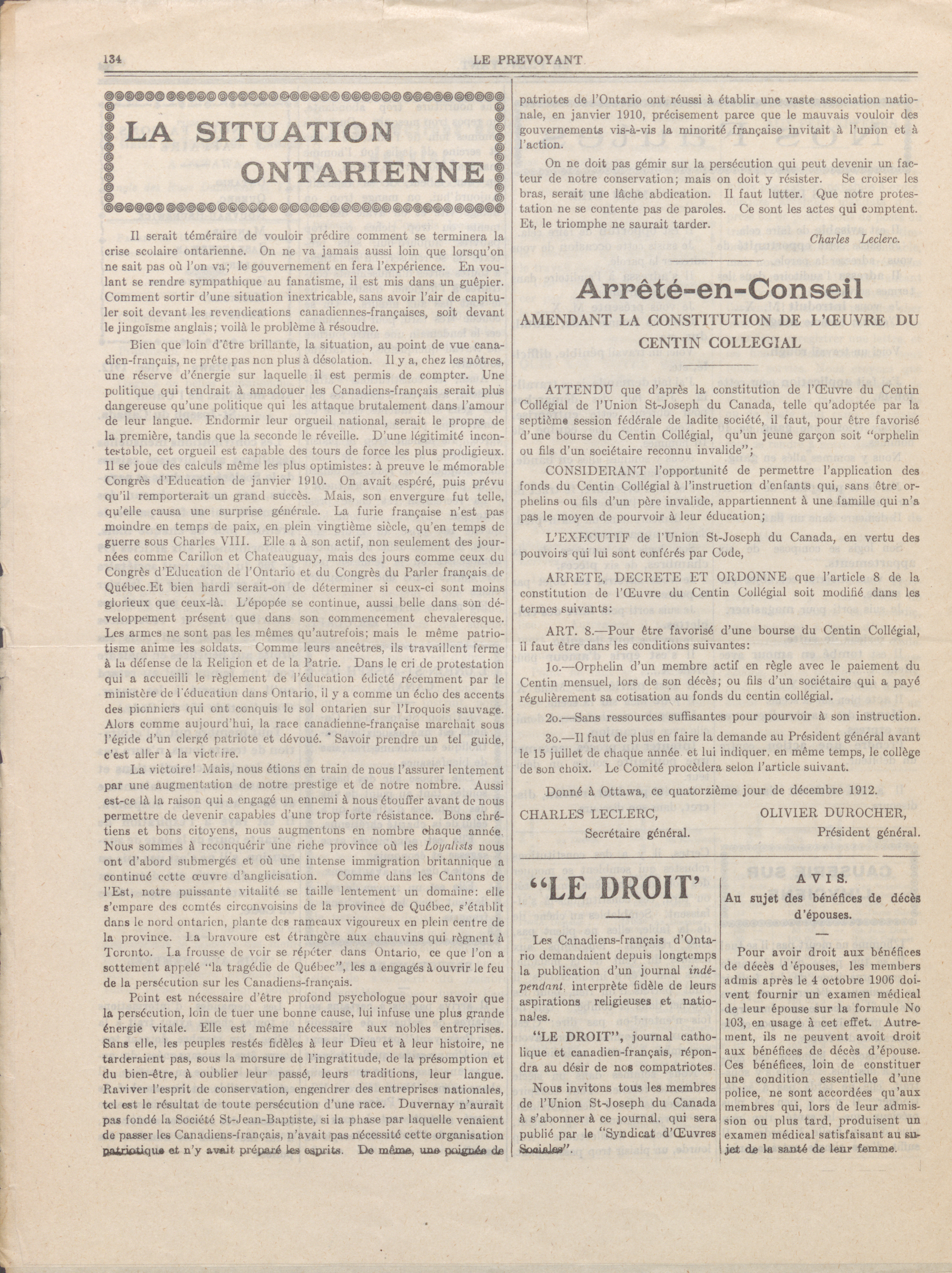 Le Prévoyant : Volume XVI, No 16 (décembre 1912)