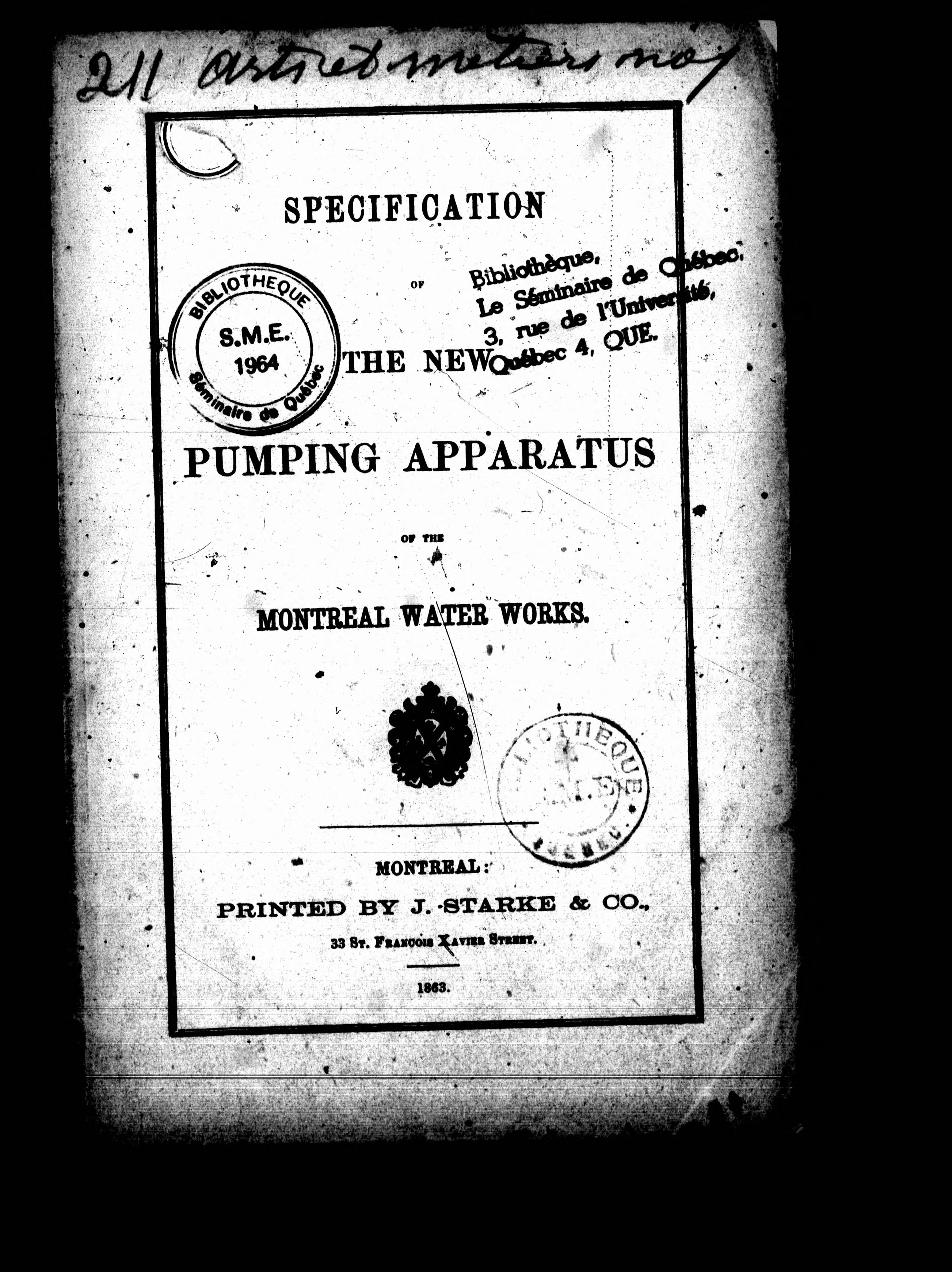 Notice of tender on back cover issued by the Water Works Department of the corporation of Montreal and signed, Louis Lesage, superintendent of the M. W.W.