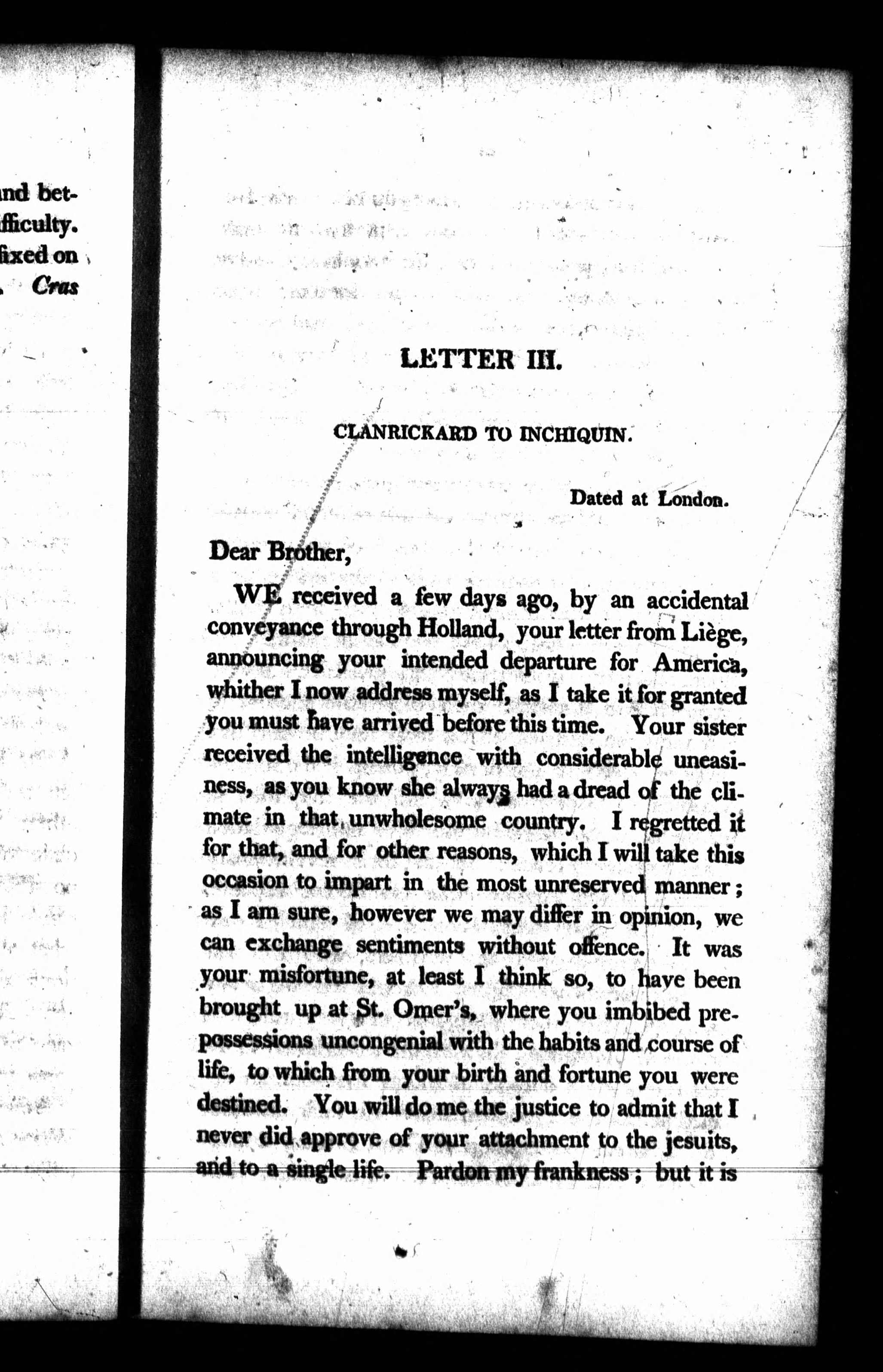 - Inchiquin, the Jesuit's letters, during a late residence in the United States of America : being a fragment of a rpivate correspondence, accidentally discovered in Europe : containing a favourable view of the manners, literature, and state of society, of the United States, and a refutation of many of the aspersions cast upon this country, by former residents and tourists