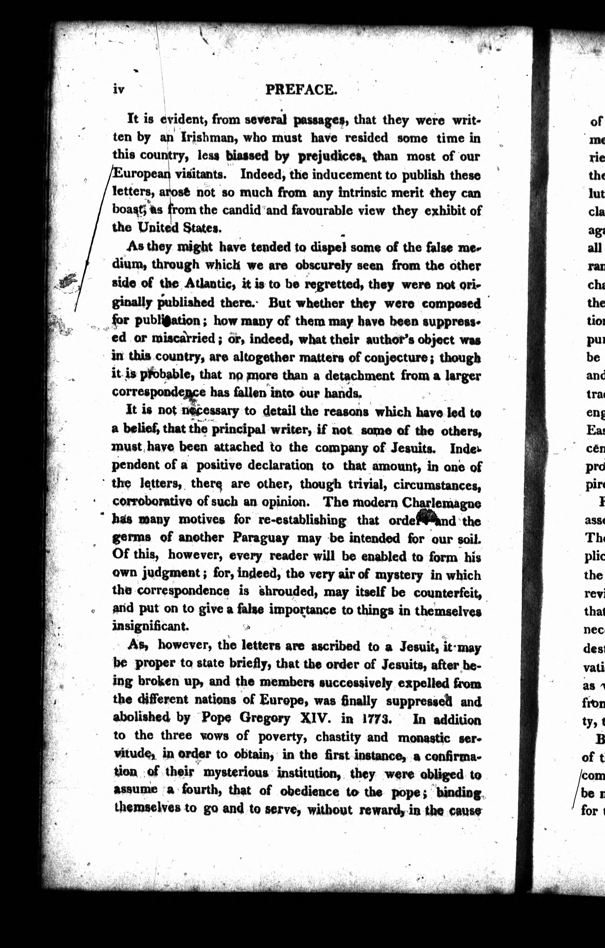 - Inchiquin, the Jesuit's letters, during a late residence in the United States of America : being a fragment of a rpivate correspondence, accidentally discovered in Europe : containing a favourable view of the manners, literature, and state of society, of the United States, and a refutation of many of the aspersions cast upon this country, by former residents and tourists