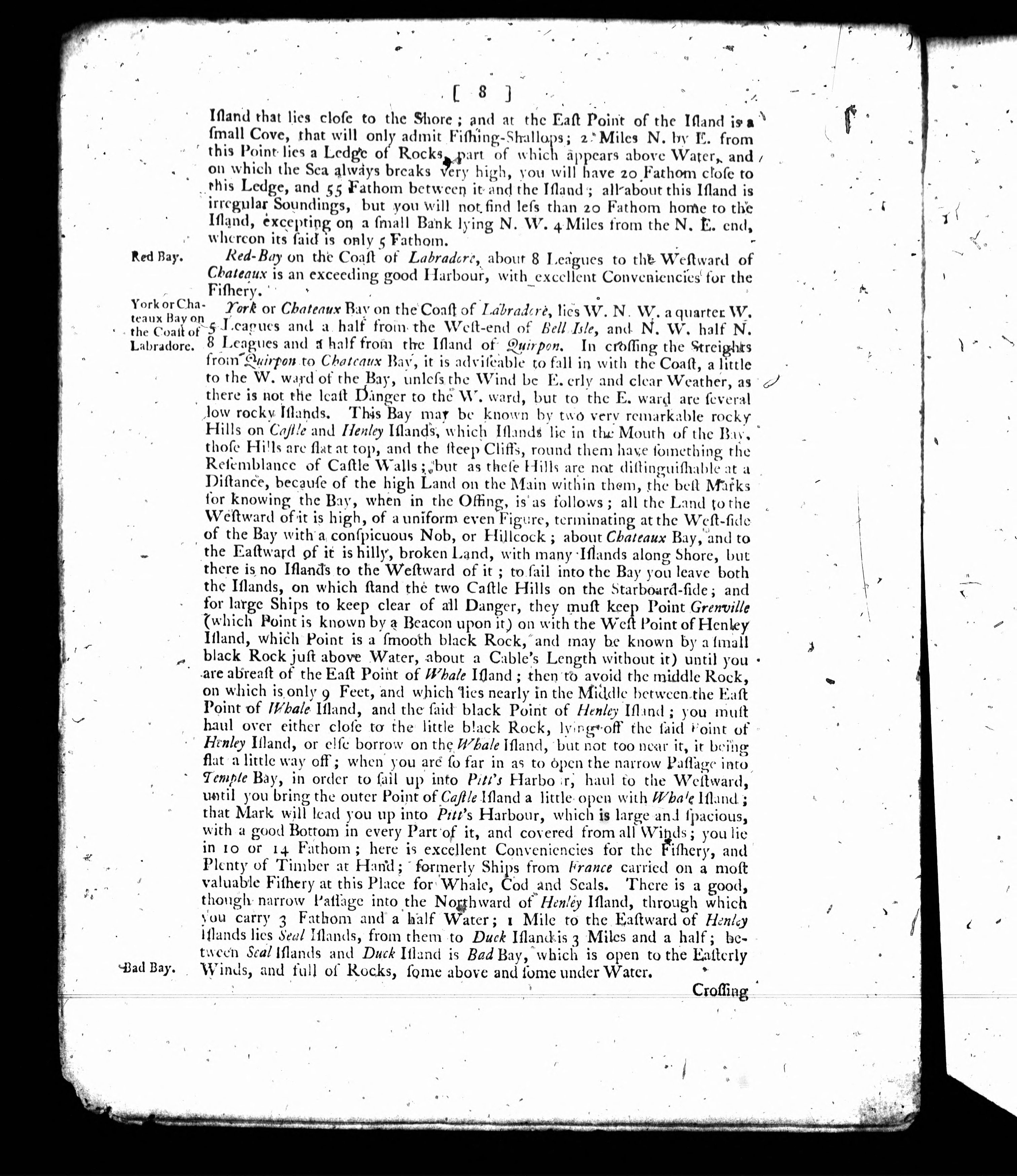 Directions for navigating on part of the N.E. side of Newfoundland, and in the Streights [sic] of Belle-Islle [sic].