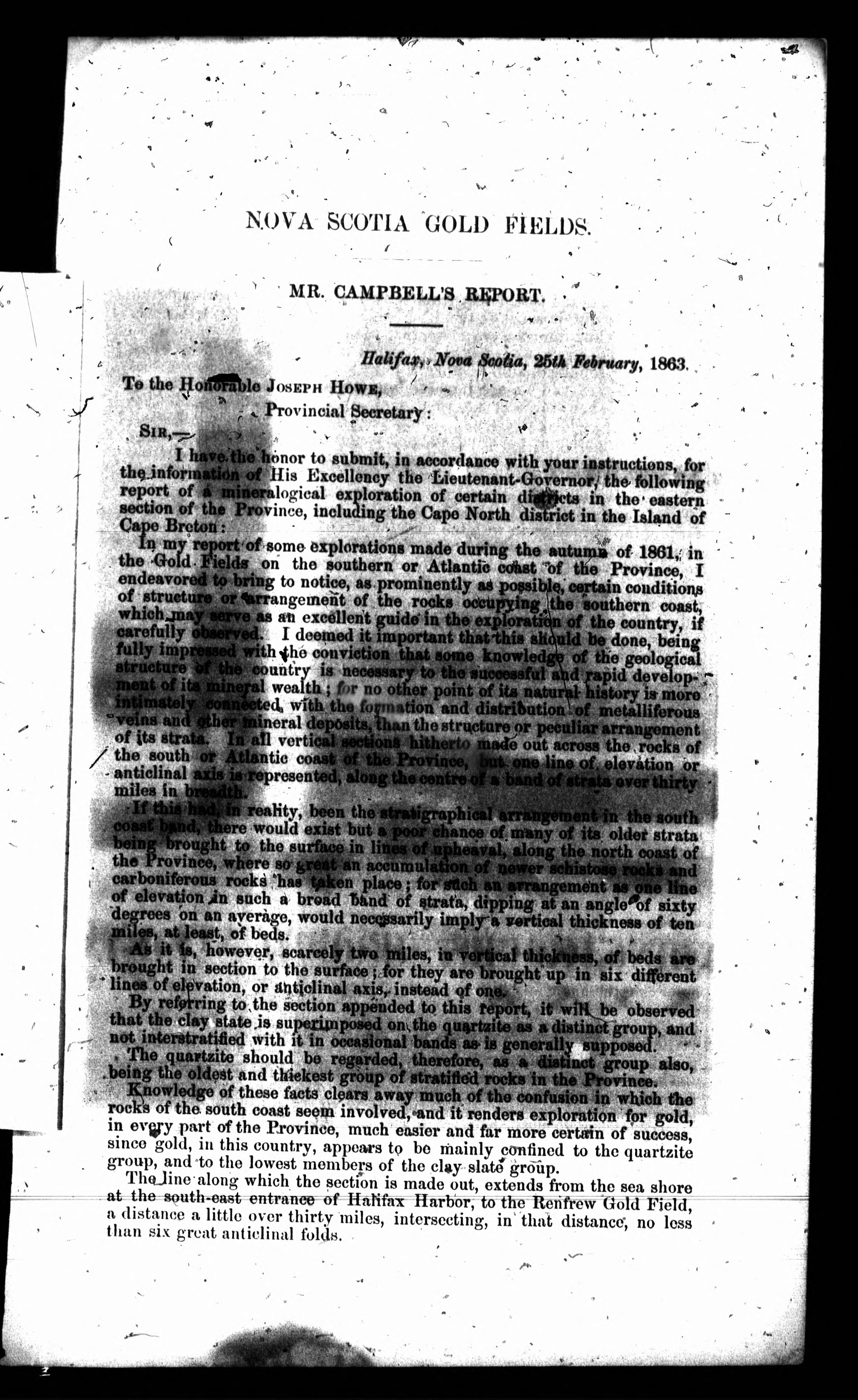 - Nova Scotia gold fields : Mr. Campbell's report.