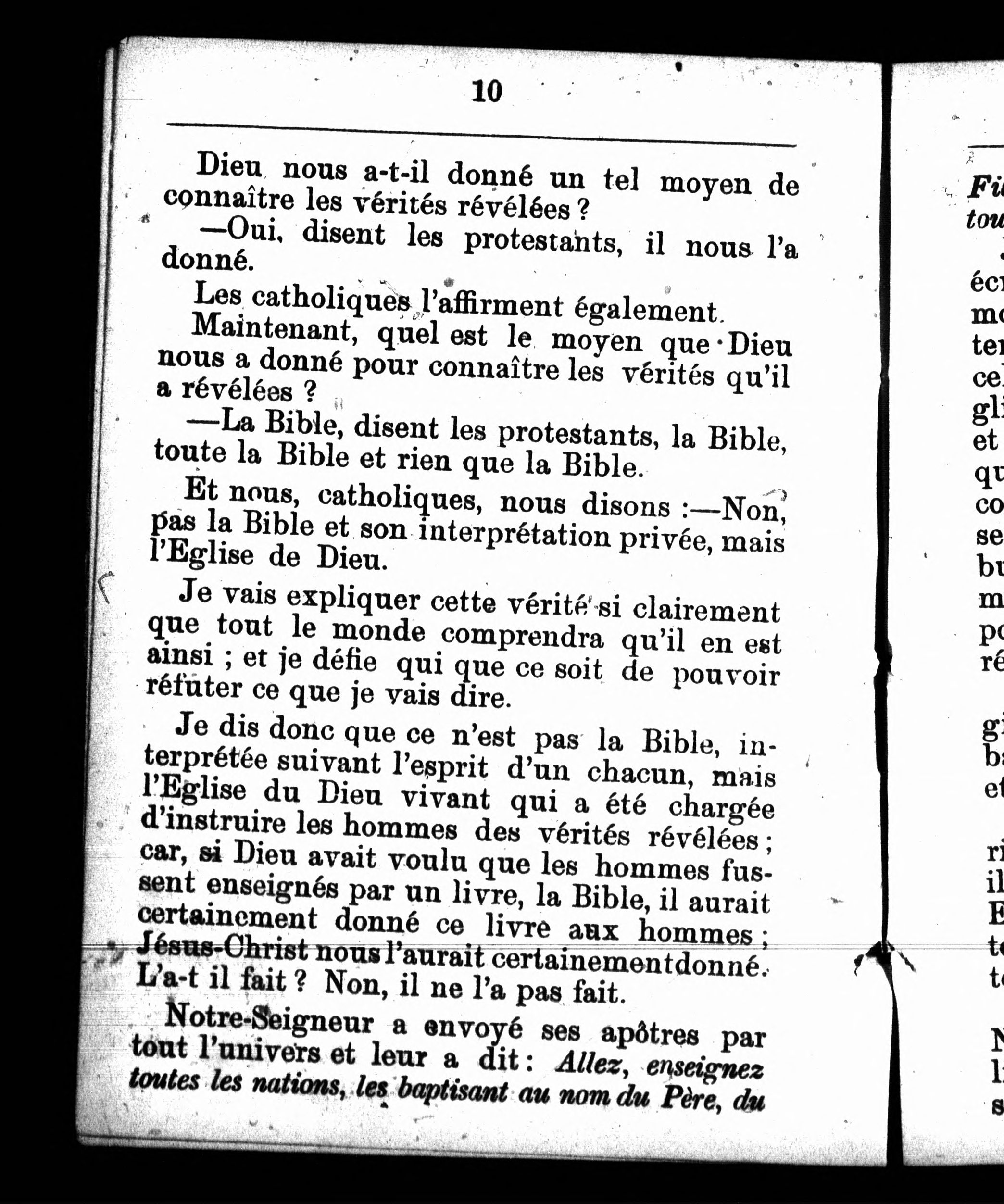- Conférence donnée à la cathédrale d'Ottawa par le R.P. Damen, S. J., 1871 : la Bible ne suffit pas pour enseigner [1]es vérités nécessaires au salut.