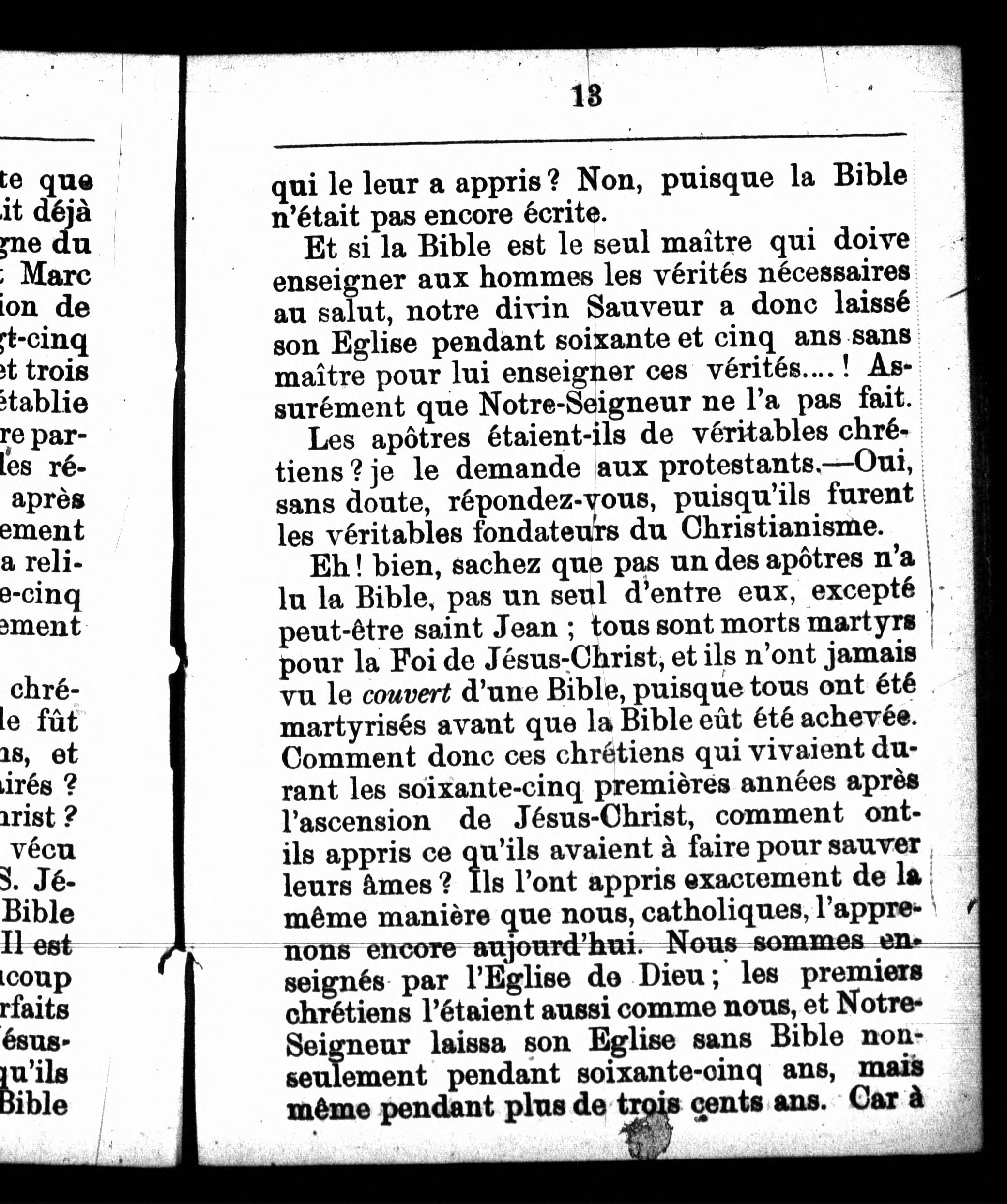 - Conférence donnée à la cathédrale d'Ottawa par le R.P. Damen, S. J., 1871 : la Bible ne suffit pas pour enseigner [1]es vérités nécessaires au salut.