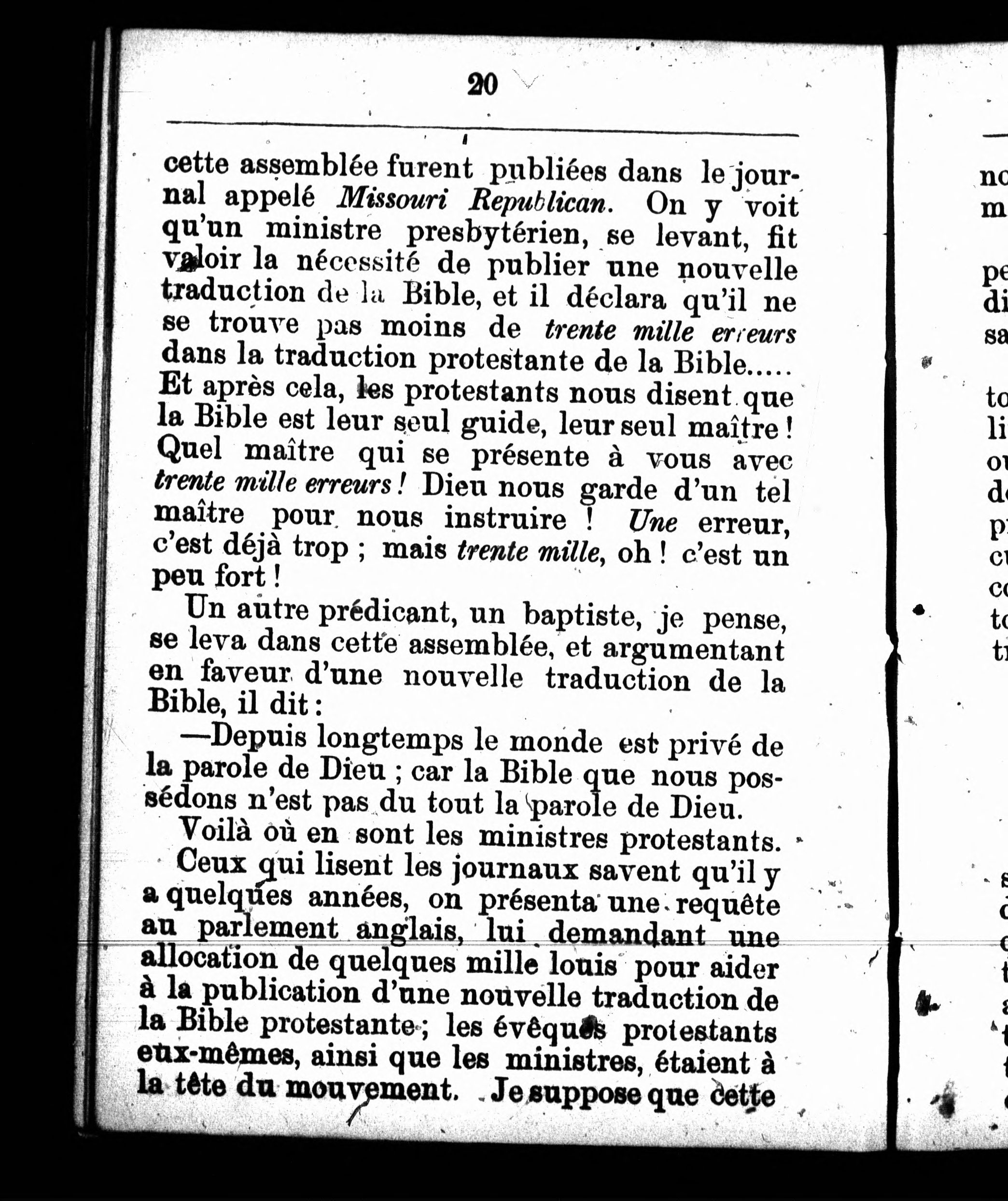 - Conférence donnée à la cathédrale d'Ottawa par le R.P. Damen, S. J., 1871 : la Bible ne suffit pas pour enseigner [1]es vérités nécessaires au salut.